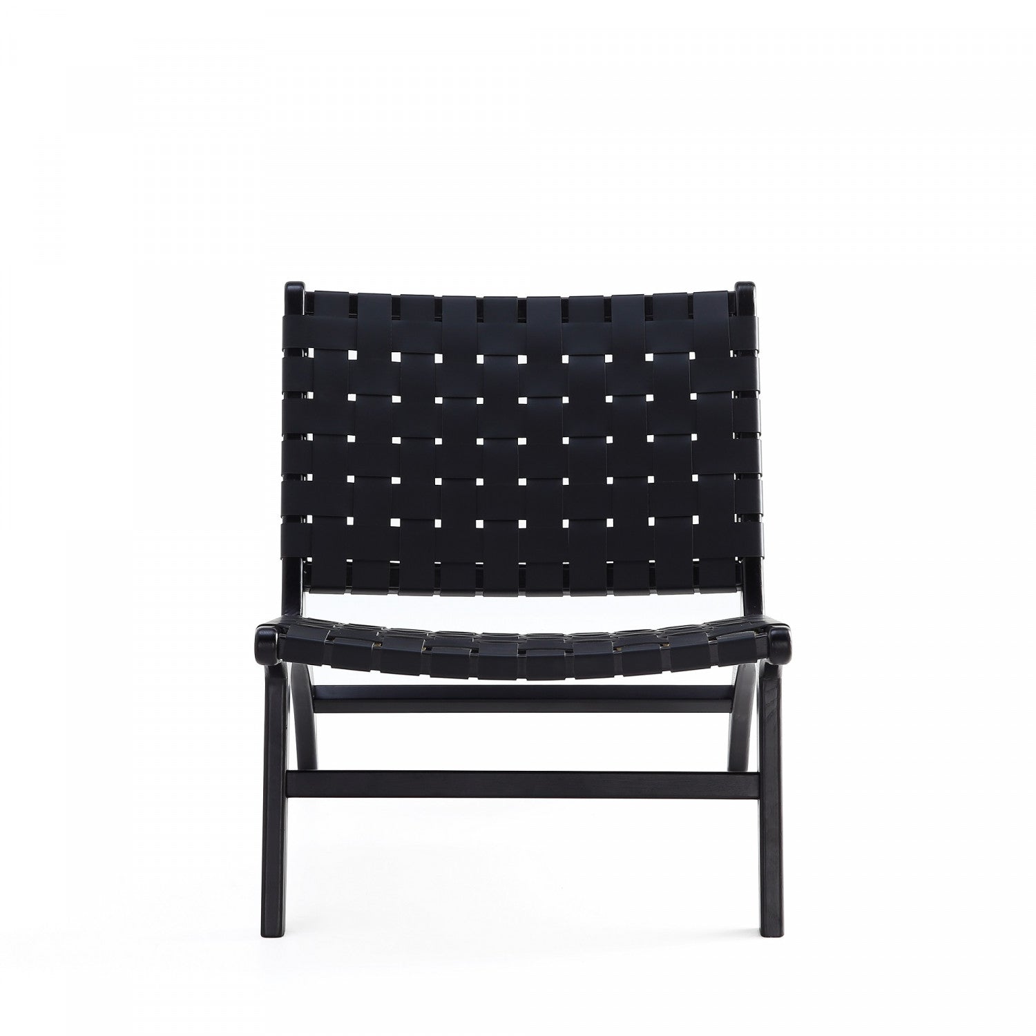 Maintenon Industry Chic Wood Vegan Leather Accent Chair in Black - Set of 2