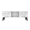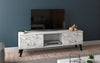 Entertaining has never been easier or looked this good, with the Doyers TV stand, an edgy and modern piece that’s simple in design, yet completely functional and seamless in any space. With four concealed shelves perfect for tucking away all media accessories, electronics, books, and beyond, and center open space to showcase a DVD player, coffee table books, and any favorite items to keep on display. Set decorative accents, framed family photos, or planters on its base to tie the space together, and invite friends and family over for a great movie night in.