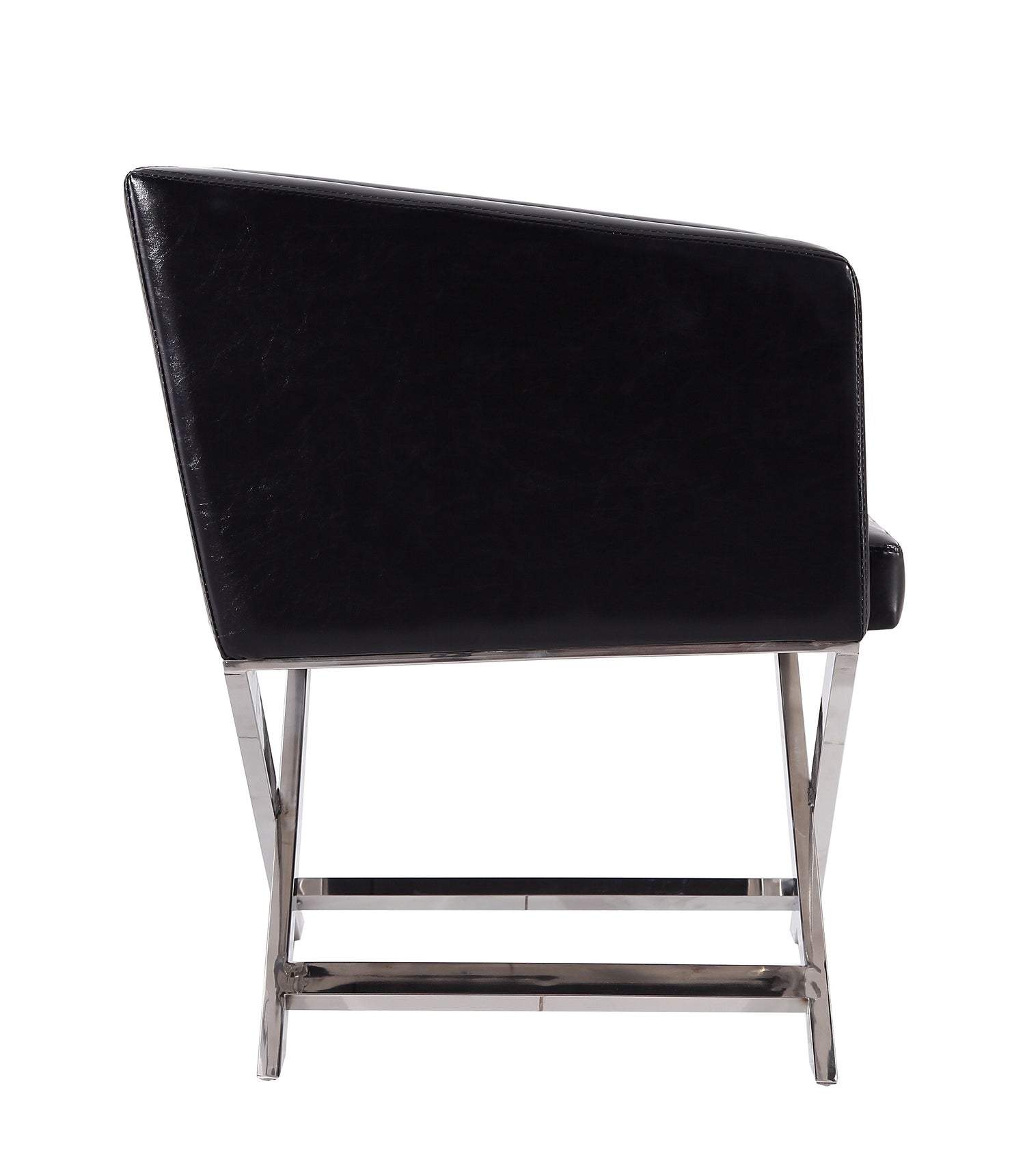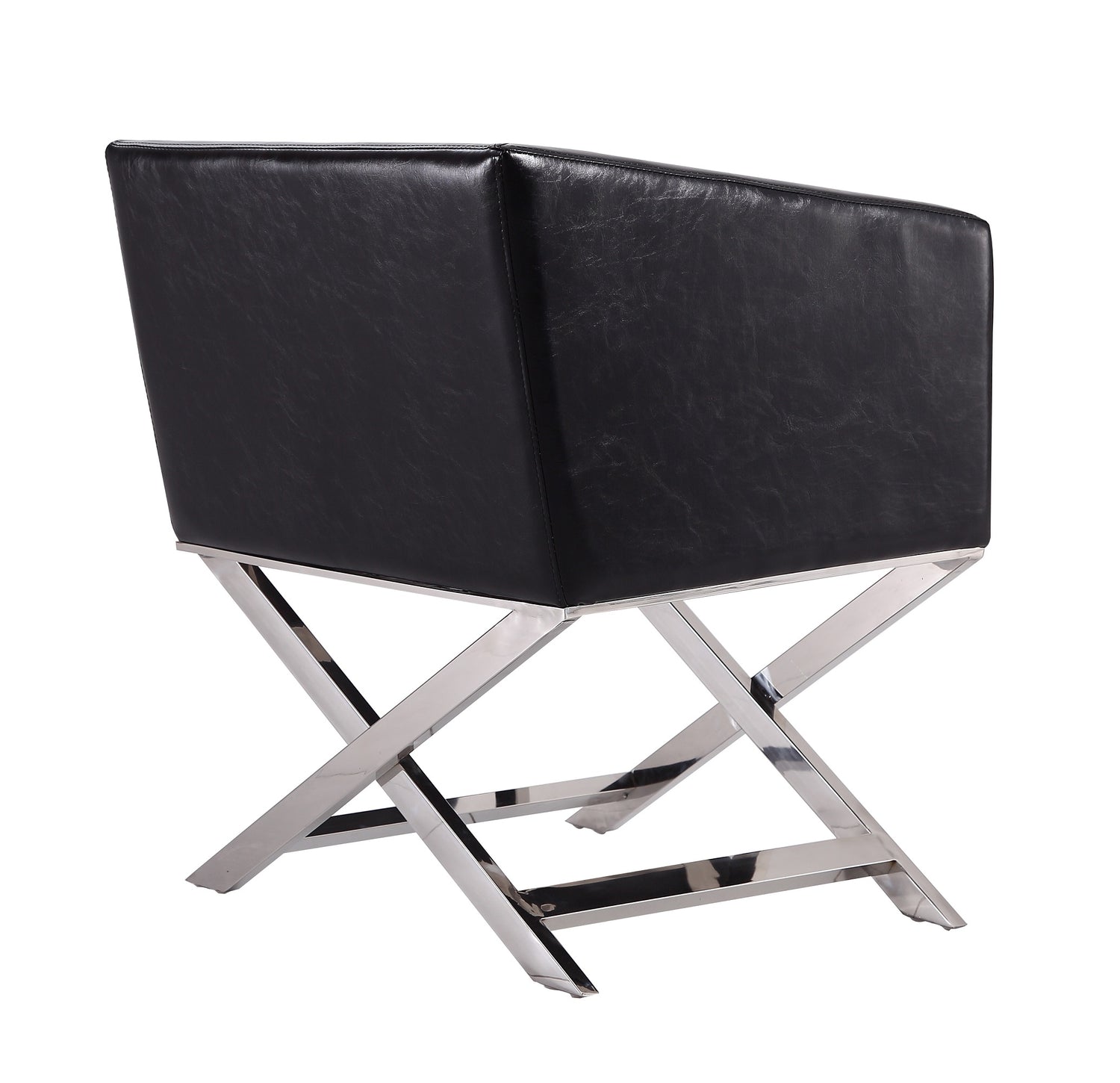 Take 5 in style. The iconic director's chair silhouette is reimagined in this confident contemporary accent chair. Classic folding legs are replaced with welded chrome-finished metal, while the casual low-back seat takes on tight tailoring and structured lines, transforming it into something decidedly sophisticated. Deep cushioning promises comfort with the inviting, slightly textured supple Faux Leather. Its generous seat and angled armrests give you plenty of room to lounge with a martini and great conversation.