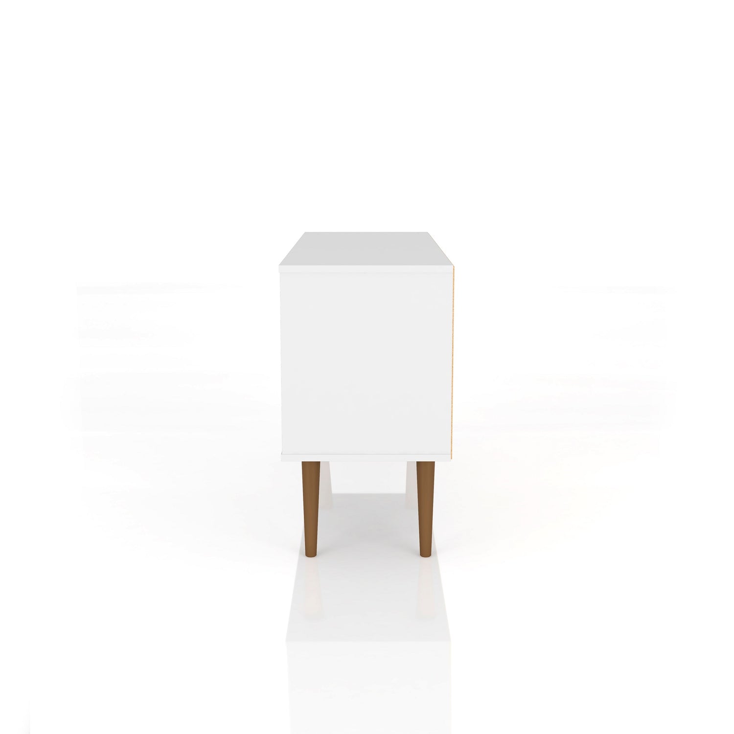 The Liberty 42.52 Mid-Century Modern TV Stand is the perfect blend of quality craftsmanship, brilliant design, and purposeful functionality. Featuring 2 open shelves, and one hidden cubby to create the ultimate entertainment center perfect for stashing DVDs, board games, electronics, and media accessories. Free standing and easy to maneuver, this piece will mix well with any decor and its artful grooves will create a statement in any space.