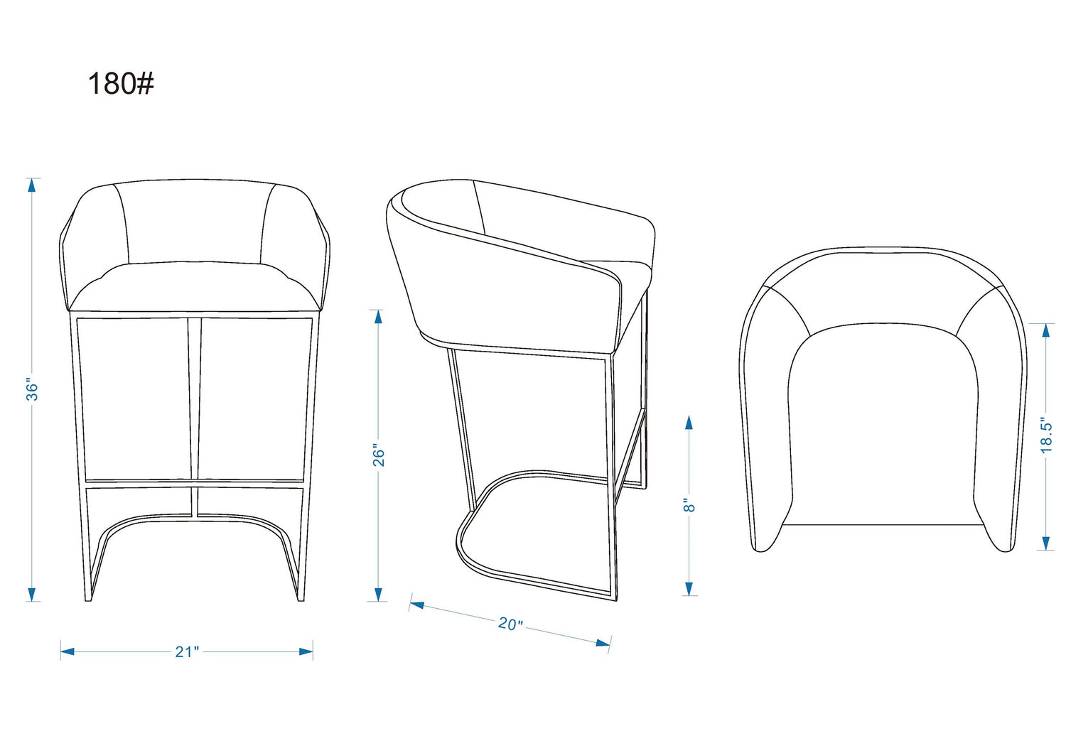 Width: 20" (50.8 cm) Height: 36" (91.4 cm) Depth: 21" (53.3 cm)