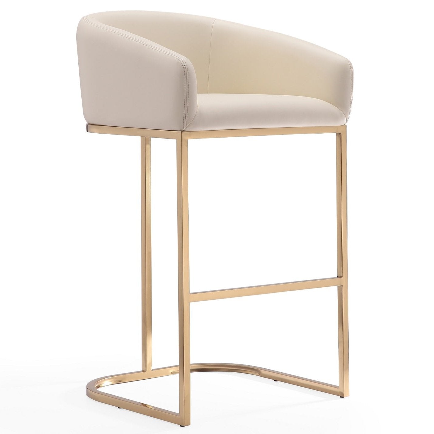 Manhattan Comfort Louvre 40" Stainless Steel Barstool - Cream & Titanium Gold