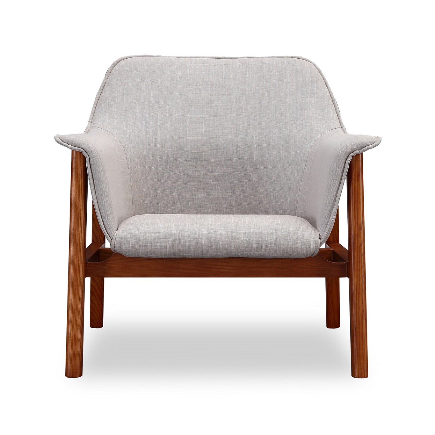 Manhattan Comfort Miller Linen Weave Accent Chair - Grey & Walnut