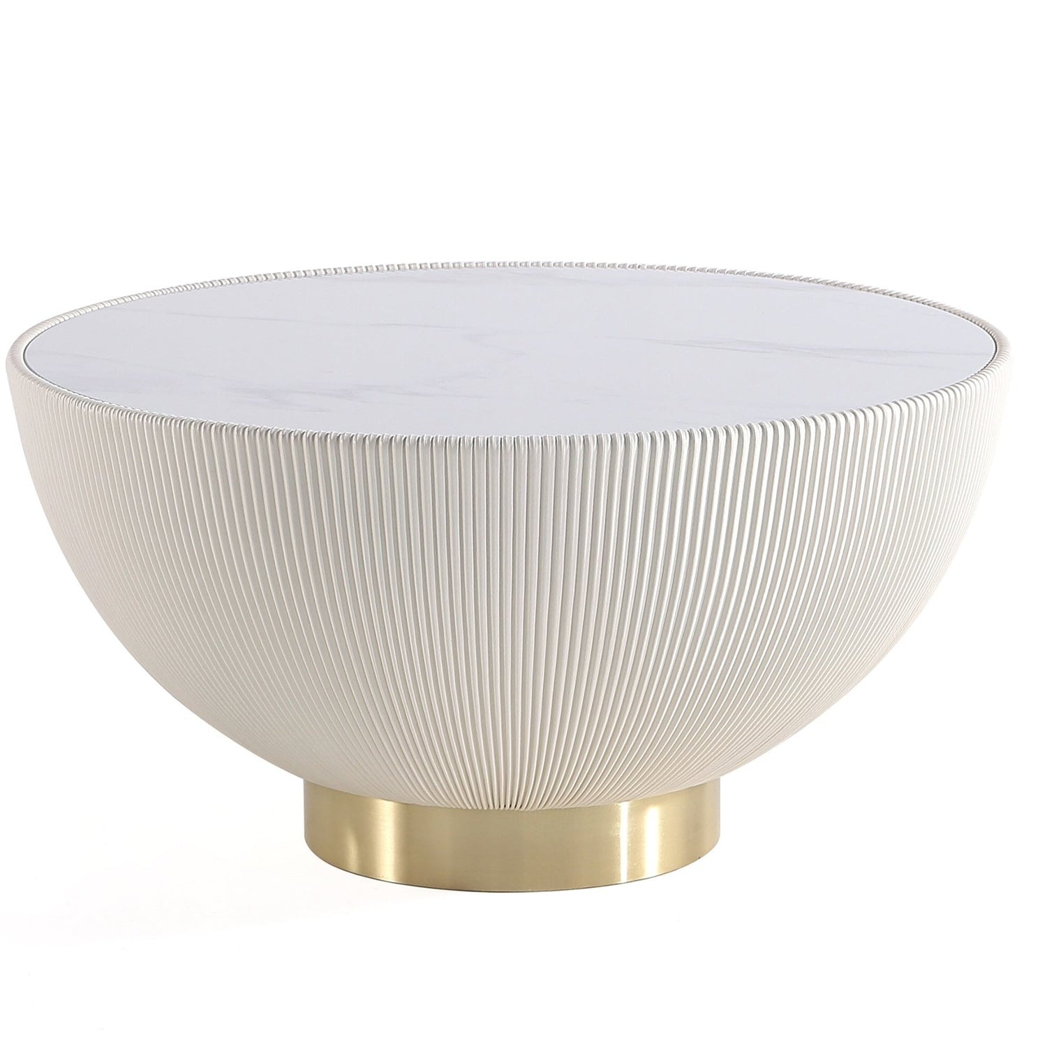 Manhattan Comfort Modern Anderson Coffee Table Upholstered Leatherette with Ceramic Faux Marble Tabletop - Cream