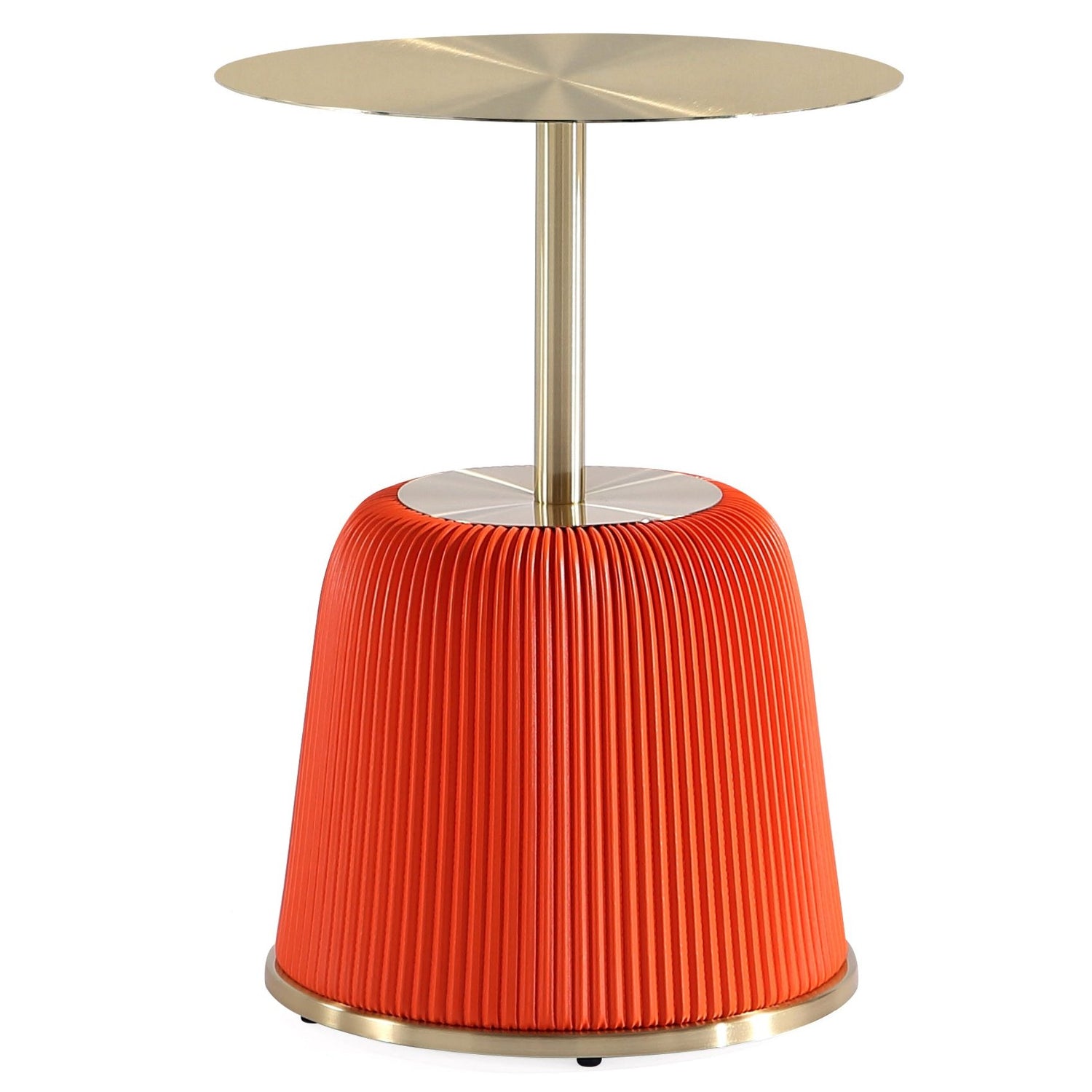 Manhattan Comfort Modern Anderson End Table 1.0 Upholstered Leatherette with Gold Tabletop - Orange