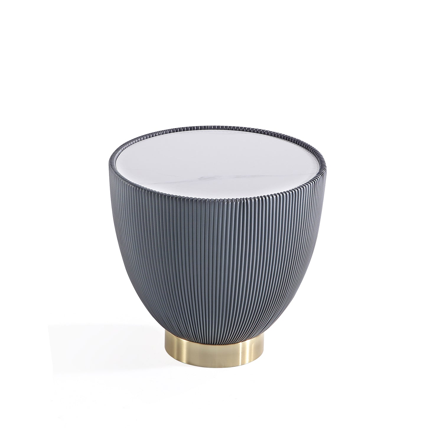 Manhattan Comfort Modern Anderson End Table 2.0 Upholstered Leatherette with Ceramic Faux Marble Tabletop - Grey