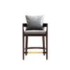 Standing on solid wood legs, this stool's wide cushioned seat and back, offers comfort and a clean-lined aesthetic to kitchen islands and bar tops. Accented with a gold finished footrest, casual comfort meets sleek and chic modern design to update or accent your home's upscale decor.