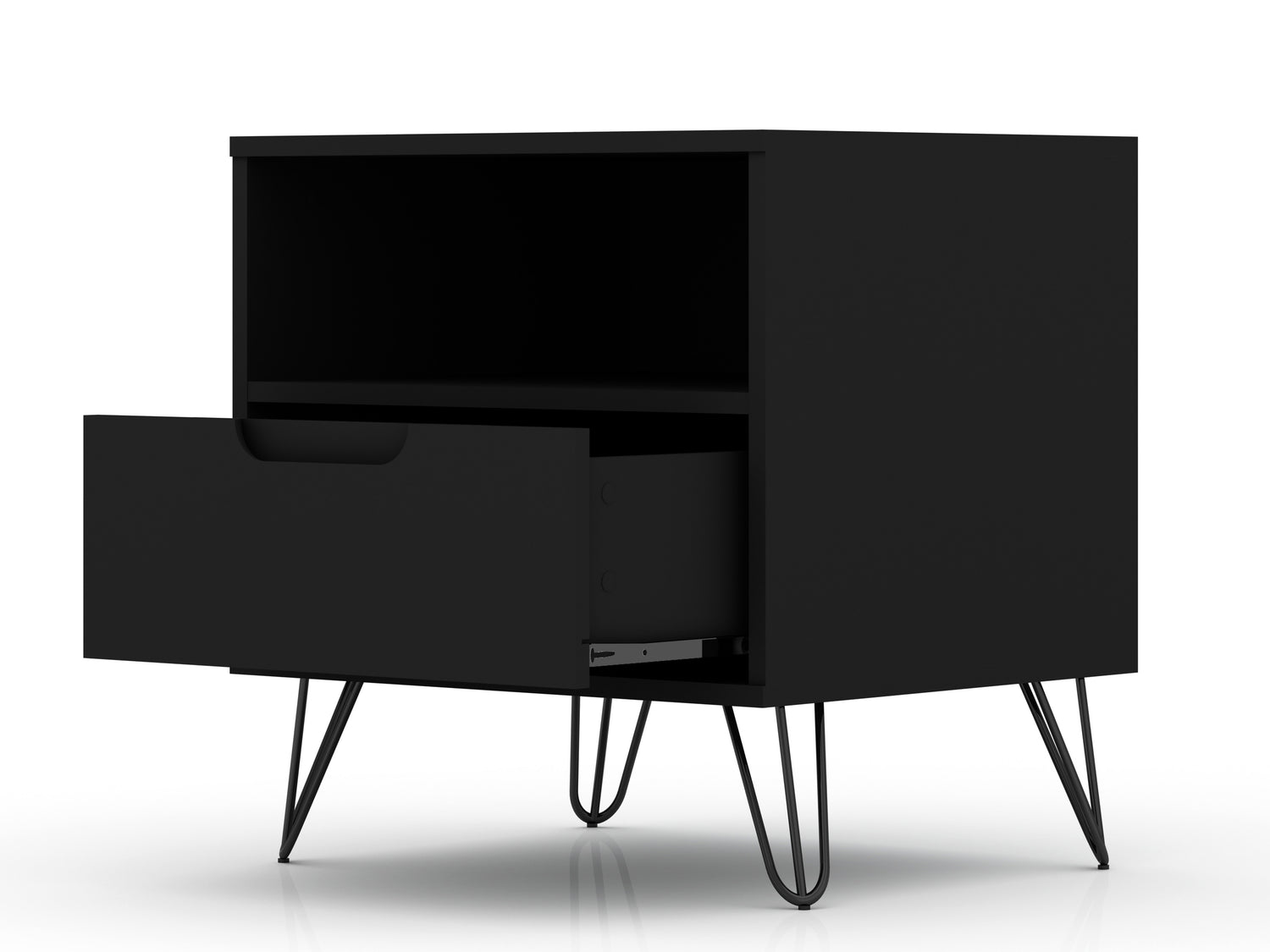 Manhattan Comfort Rockefeller Mid-Century Modern Nightstand with Drawer - Black