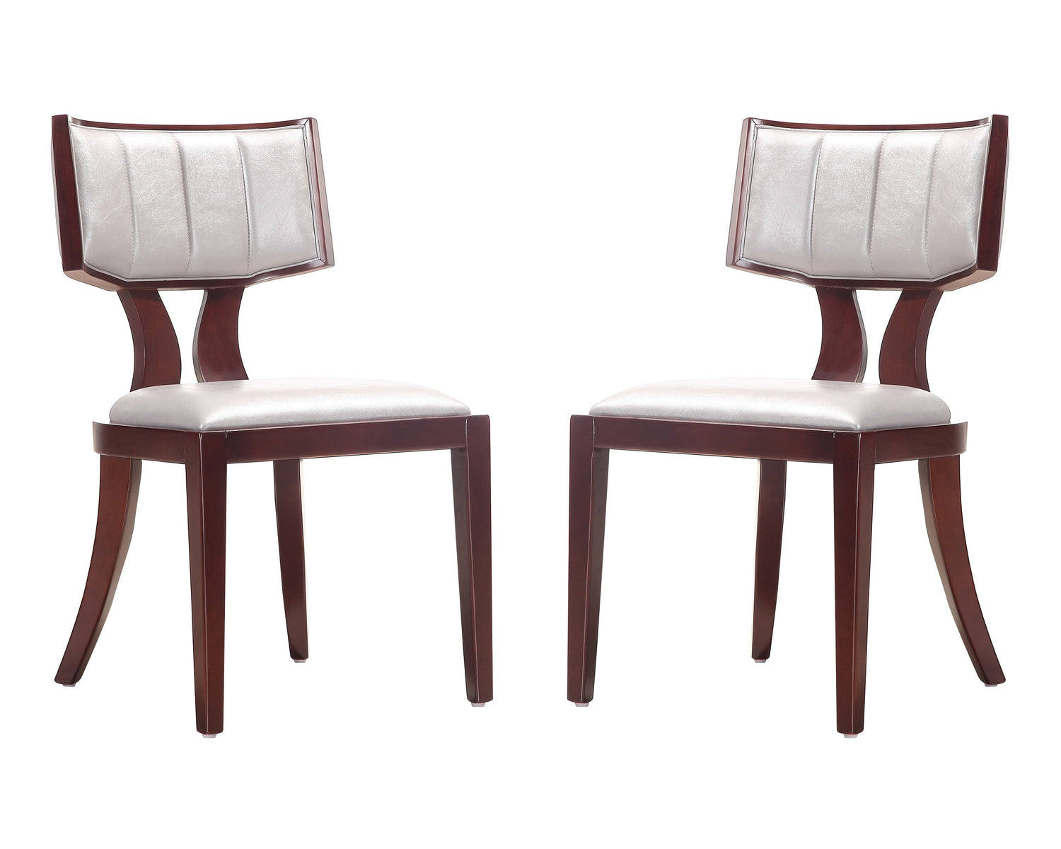 Manhattan Comfort Set of 2 Pulitzer Faux Leather Dining Chairs - Silver & Walnut