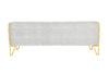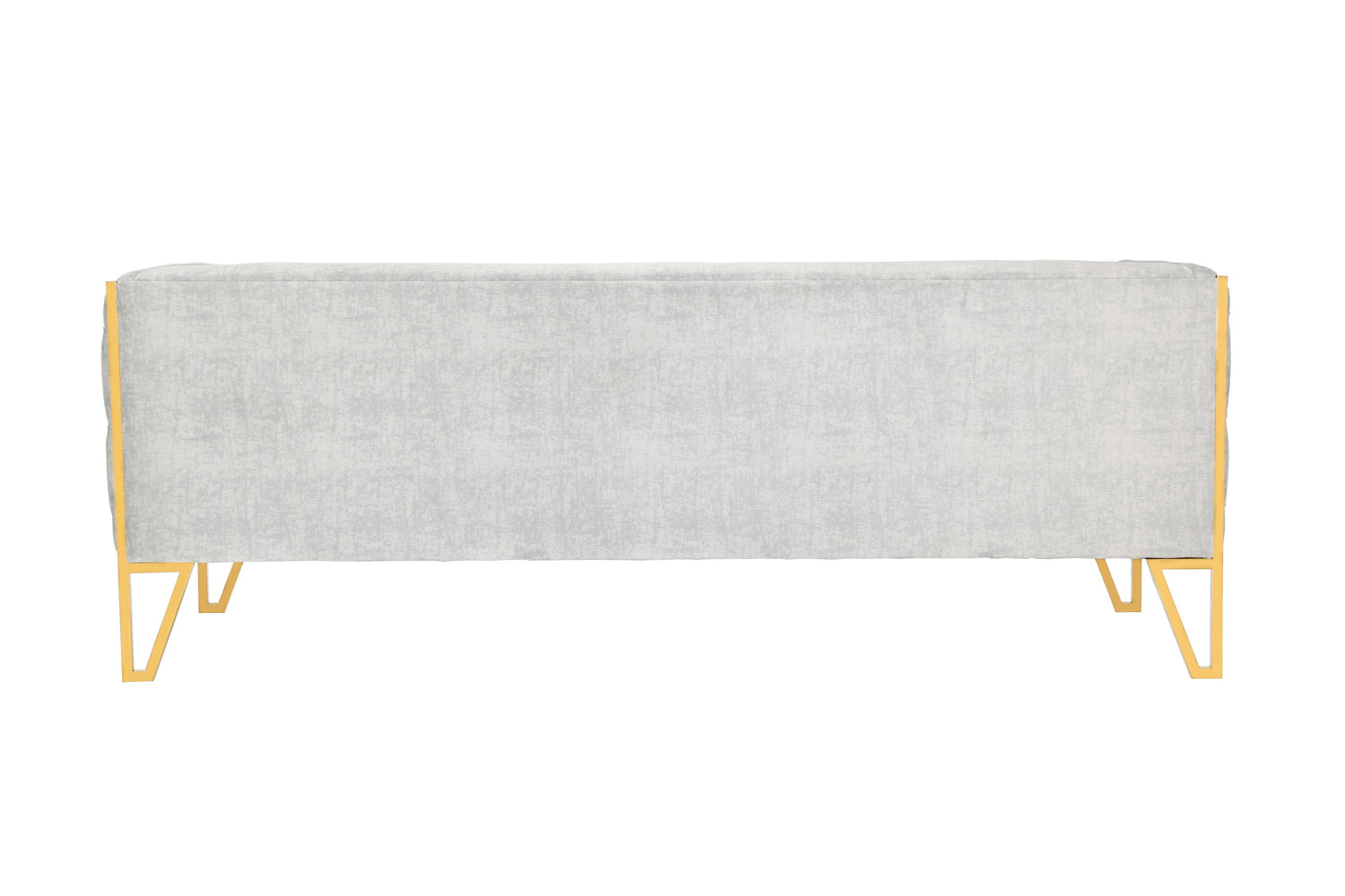 Dynamic. Contemporary. Upscale. Freshen up your living space with the Vector Sofa. Featuring a subtly geometric frame and open cutout feet, the design combines clean architectural lines with posh texture for an eye catching look. Rows of deep button tufts accentuate either end of the sofa, emphasizing the plush cushioning beneath its tailored velvet upholstery. It’s luxe polished brass finish perfects the look. Coordinate with the matching Vector Accent Chair for a stylish update to your decor.
