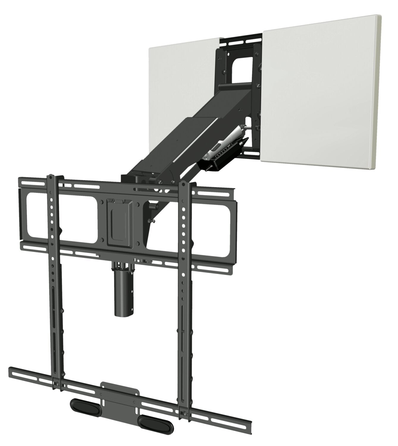 RF Remote Control: Silent Operation: Safety Mechanisms: Patented Centering Cams: Post-Installation Leveling: Paintable Wall Plate Covers: Cable Management: Built-In Sound Bar Adapter: |