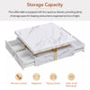 Upgrade your living space with the square coffee table featuring four built-in drawers for organized storage. Crafted from durable engineered wood, this table blends sleek design with practical function. Its clean lines and pedestal base offer a modern touch that suits various home styles. Ideal for keeping your living room clutter-free, it’s both a statement piece and a functional centerpiece. Assembly required.