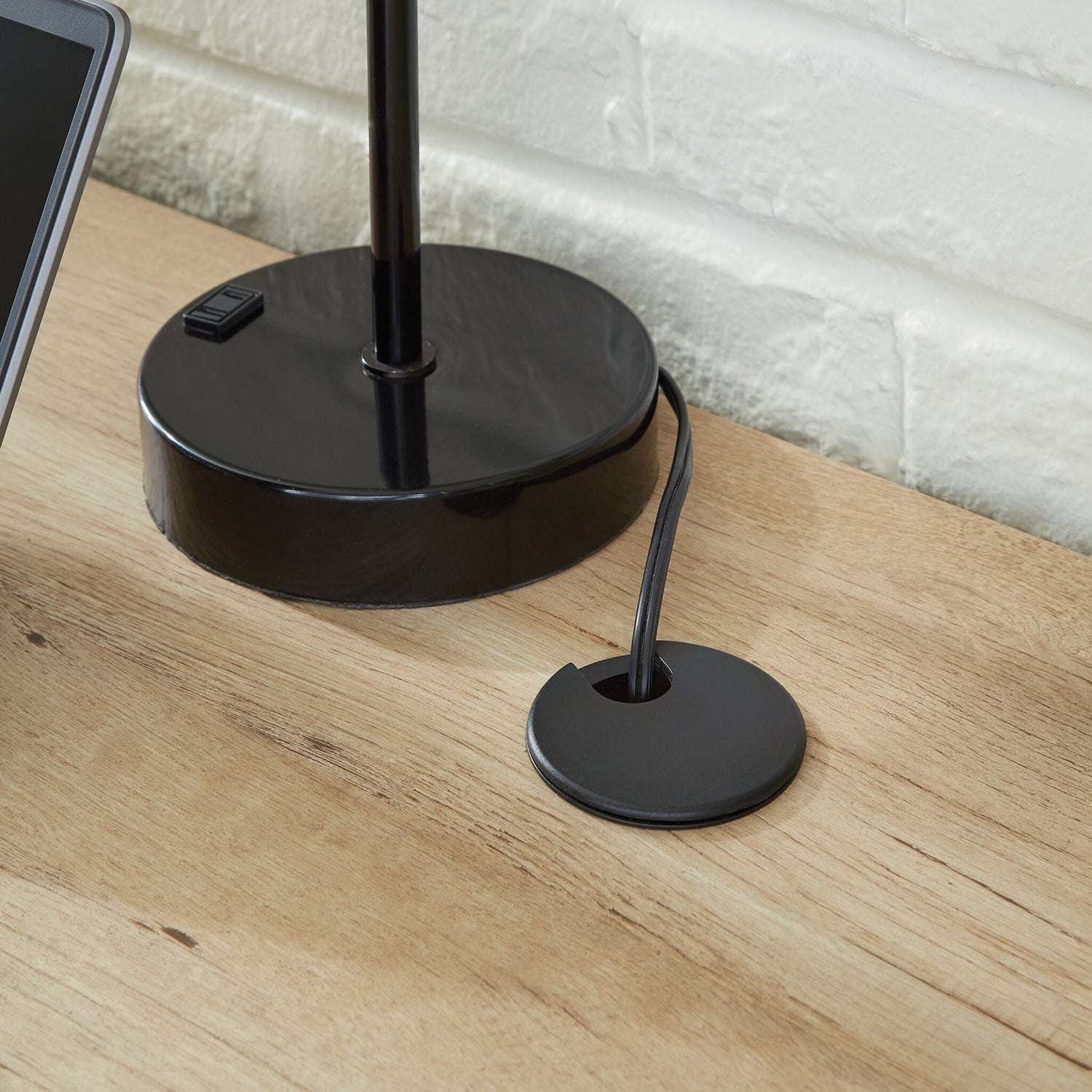 Cable Management | Two desktop grommet holes keep your cords tidy and out of sight. |