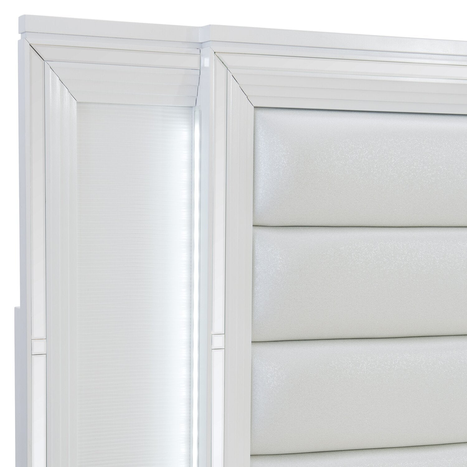 Accent Details | Bevelled mirror trim along the edges reflect light and lend glamorous flair. |
