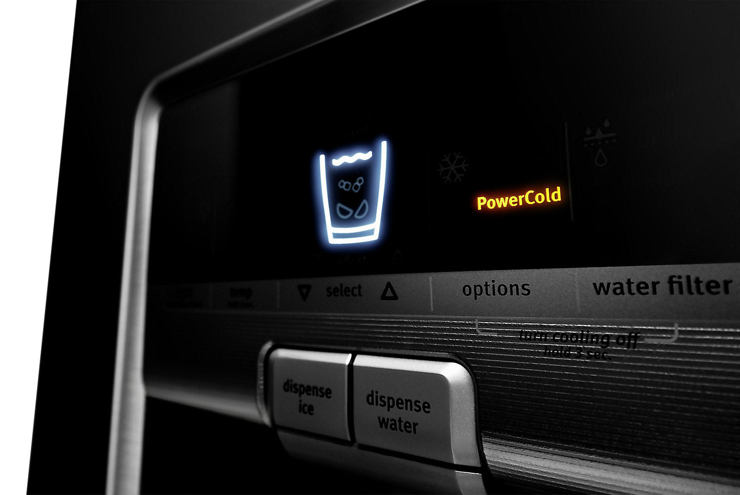 PowerCold Feature: Chill the refrigerator quickly with one touch of the PowerCold feature, to keep everything cool even if the whole family's been browsing with the doors open. Metal Slide-Out Shelf: Store-N-Door Ice Dispensing System: BrightSeries™ LED Lighting: Temperature-controlled Wide-N-Fresh™ deli drawer: Fingerprint Resistant Stainless Steel: Humidity-Controlled FreshLock Crispers: EveryDrop® Water Filter: FreshFlow™ Produce Preserver: Gallon Door Bins: Easy Access Freezer Storage System: Strongbox™ Hinge Design: Electronic Sensors: Factory-installed Ice Maker FreshFlow™ Air Filter: |