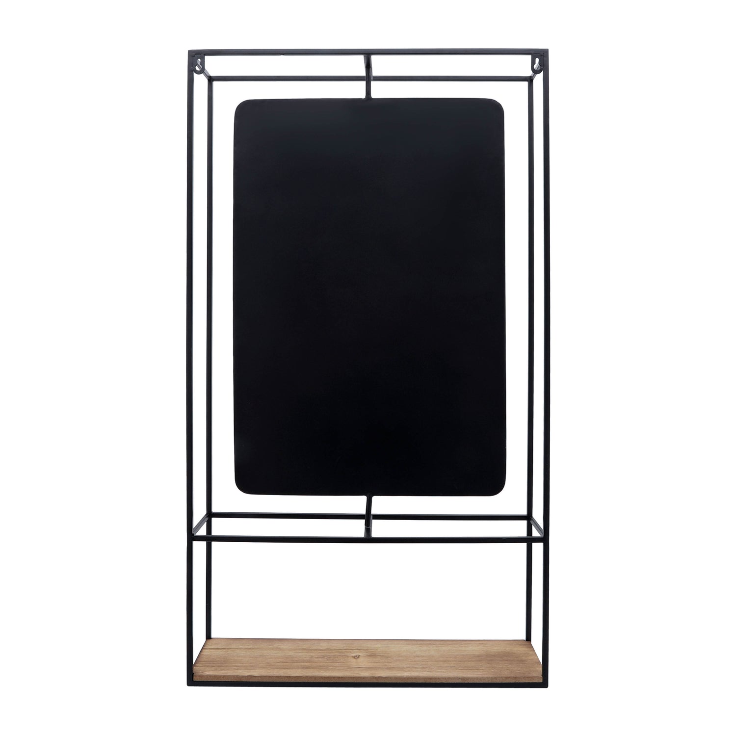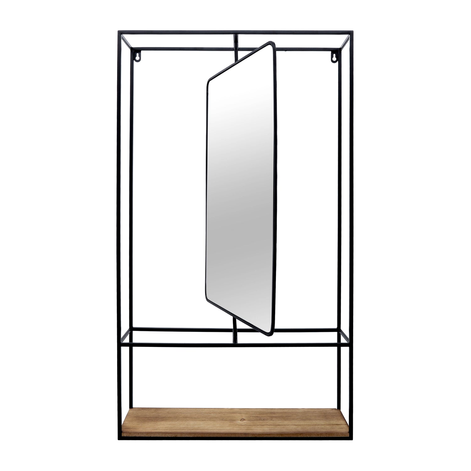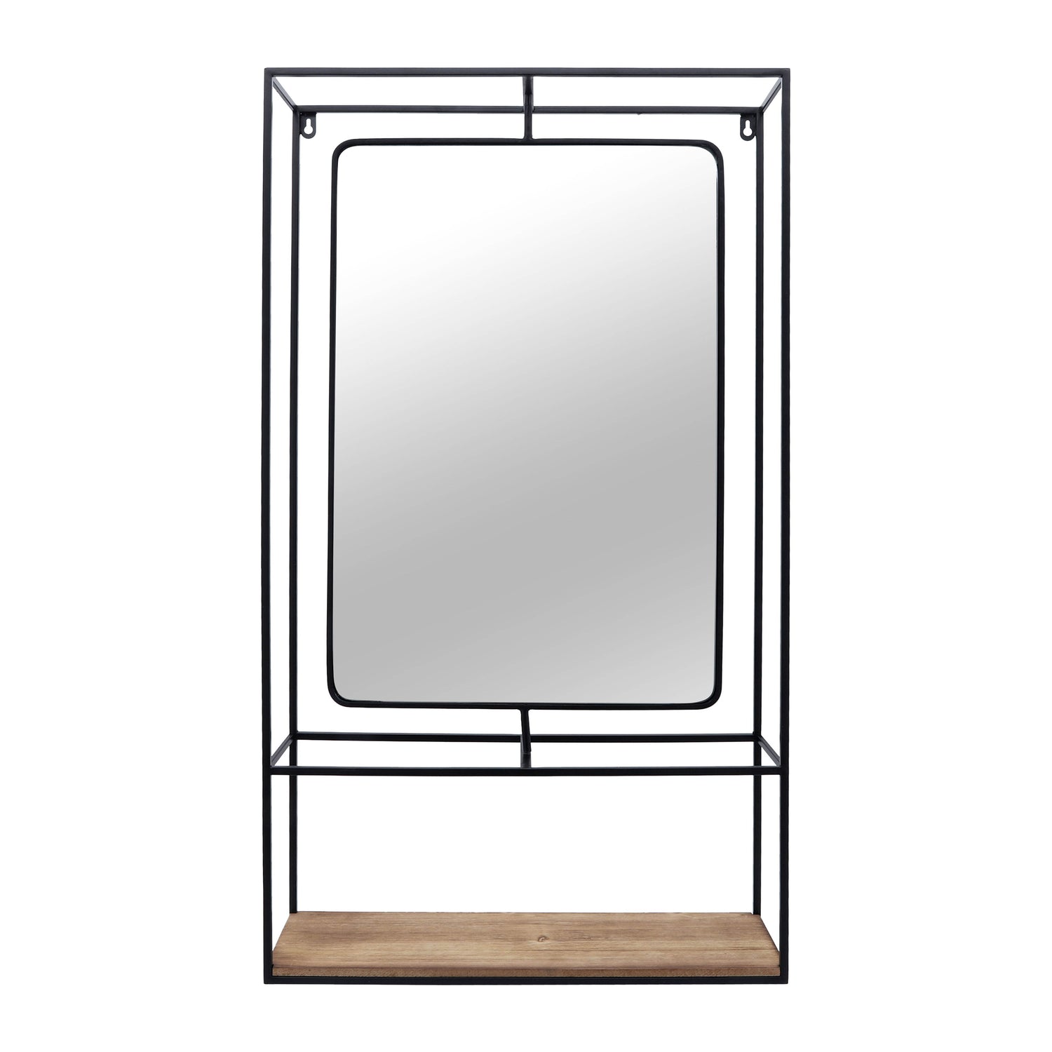 Wood and Metal 36" Wall Shelf with Mirror - Black and Brown