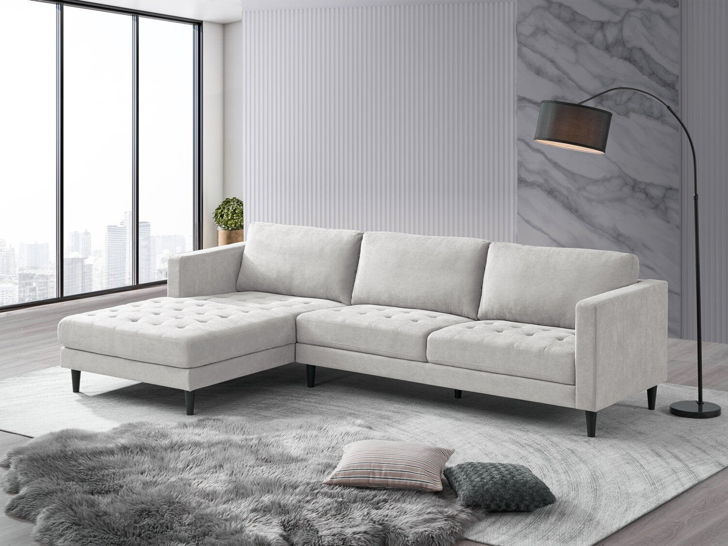 | Accent Details | A square frame, straight legs and tufted seat cushions boast retro and mid-century modern design. |