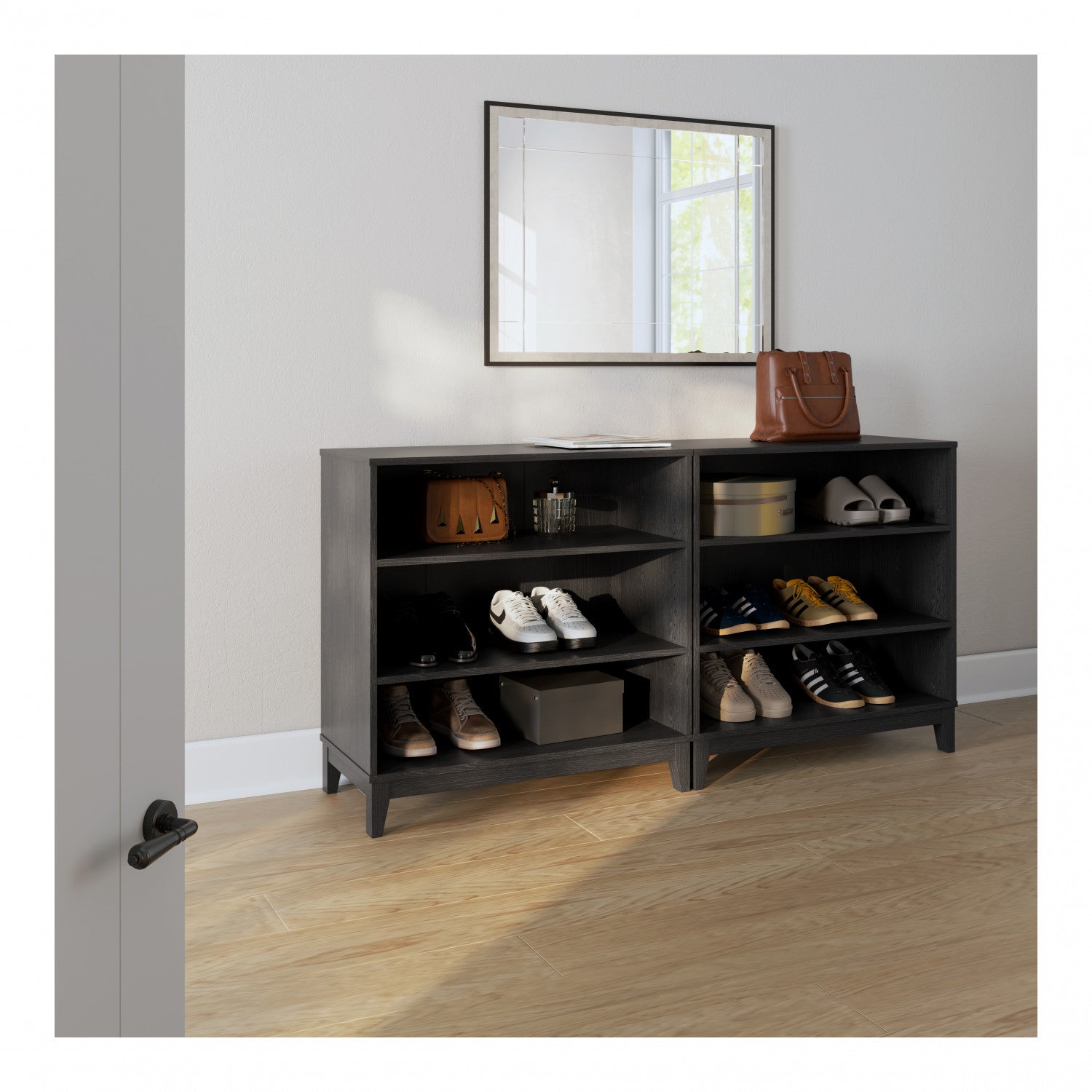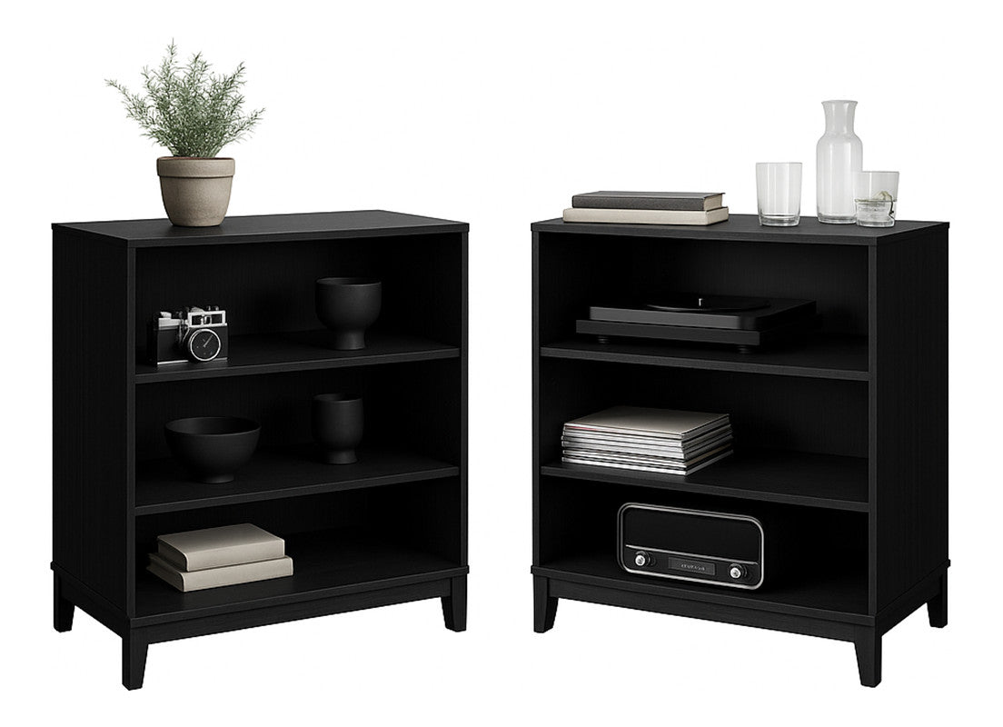 The prepac modulr set of 2 black bookcase blends timeless design, exceptional functionality, and customizable storage to create the ultimate piece of furniture for any modern space. This versatile wood bookshelf is thoughtfully crafted to adapt to a variety of storage needs, featuring three spacious shelves, including two fully adjustable ones, giving you the flexibility to store books, decorative items, or everyday essentials. Measuring 15. 5" d x 31. 75" w x 32. 5" h, it fits perfectly in entryways, living rooms, dining areas, or compact apartments, offering a sleek, space-saving solution without compromising on style. The cabinet storage design allows for easy access to your items, and its open shelving concept ensures that your favorite books, artwork, or knick-knacks are always on display. Whether you’re looking for a bookcase with storage to organize your growing collection or a cabinet with shelves to showcase your most treasured pieces, this unit is the perfect addition. Finished in a warm oak tone, it effortlessly complements both storage furniture aesthetics and more contemporary, scandinavian-inspired interiors. The sturdy, real wood legs elevate the piece, providing a modern flair while offering strength and stability. Constructed from durable, carb-2 compliant laminated composite wood, this accent cabinet is designed to stand the test of time while being environmentally responsible. The small bookshelf size makes it perfect for tight spaces without sacrificing storage, and the modular design ensures it can be seamlessly integrated with other units to create a unified storage system or used as a standalone piece. Whether you are organizing a cluttered space or looking to add a touch of style to your home, this entryway cabinet meets all your needs. The prepac black oak bookcase is proudly manufactured in usa & canada and is backed by a 5-year limited warranty, ensuring you have peace of mind for years to come.