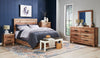 Welcome to your own personal bedroom oasis with the Mojave queen six-piece bedroom package. Reclaimed wood-styled planks are finished in both light and dark shades of brown to add a stylishly weathered touch to your bedroom. A tall panel headboard gives you a comfortable spot to lean back, relax and watch just one more episode before bed. Deep drawers with sturdy metal drawer pulls are ready to hold your clothing, blankets or other bedroom essentials. Sink into the Mojave bed tonight and let the worries of the world drift away.