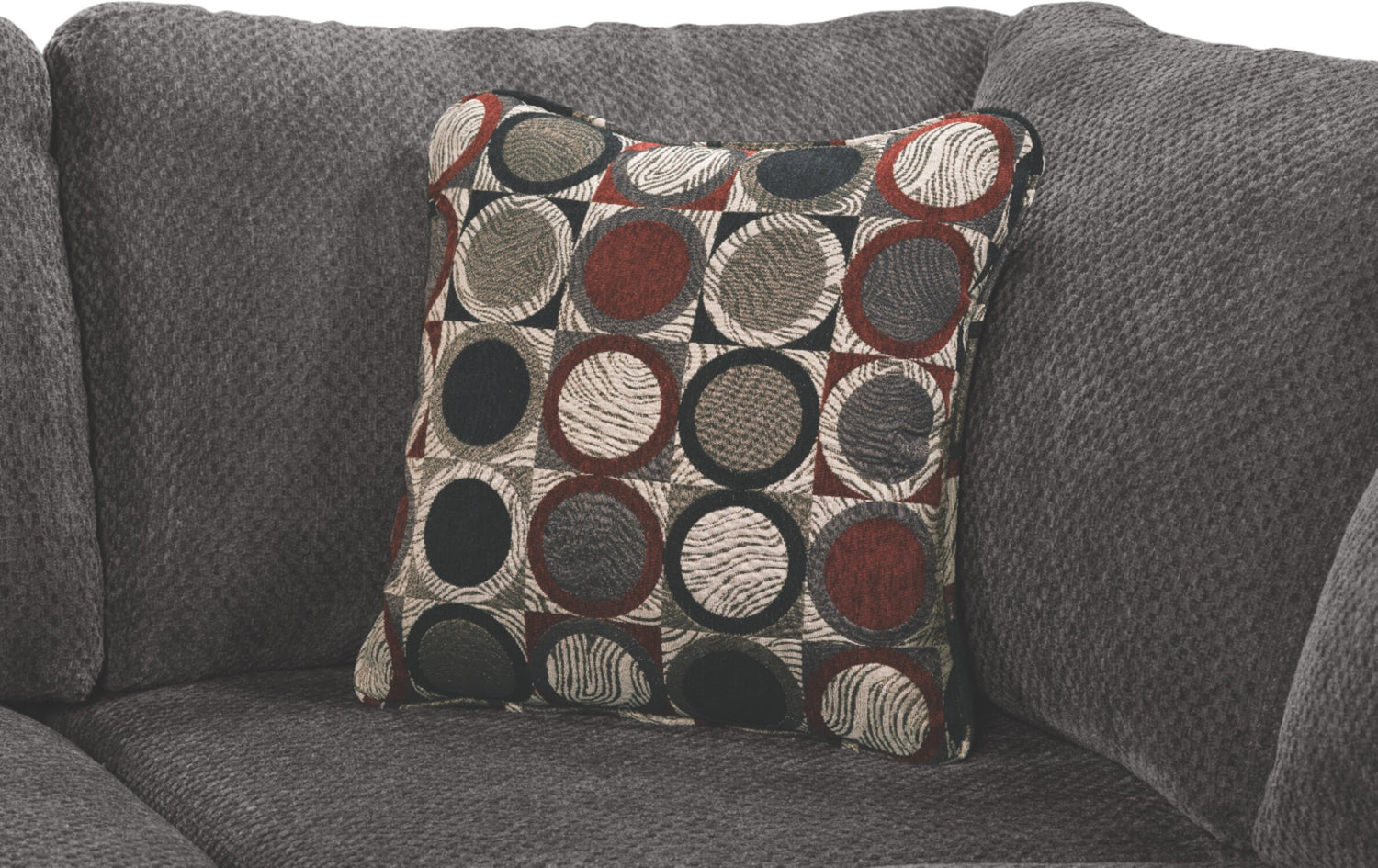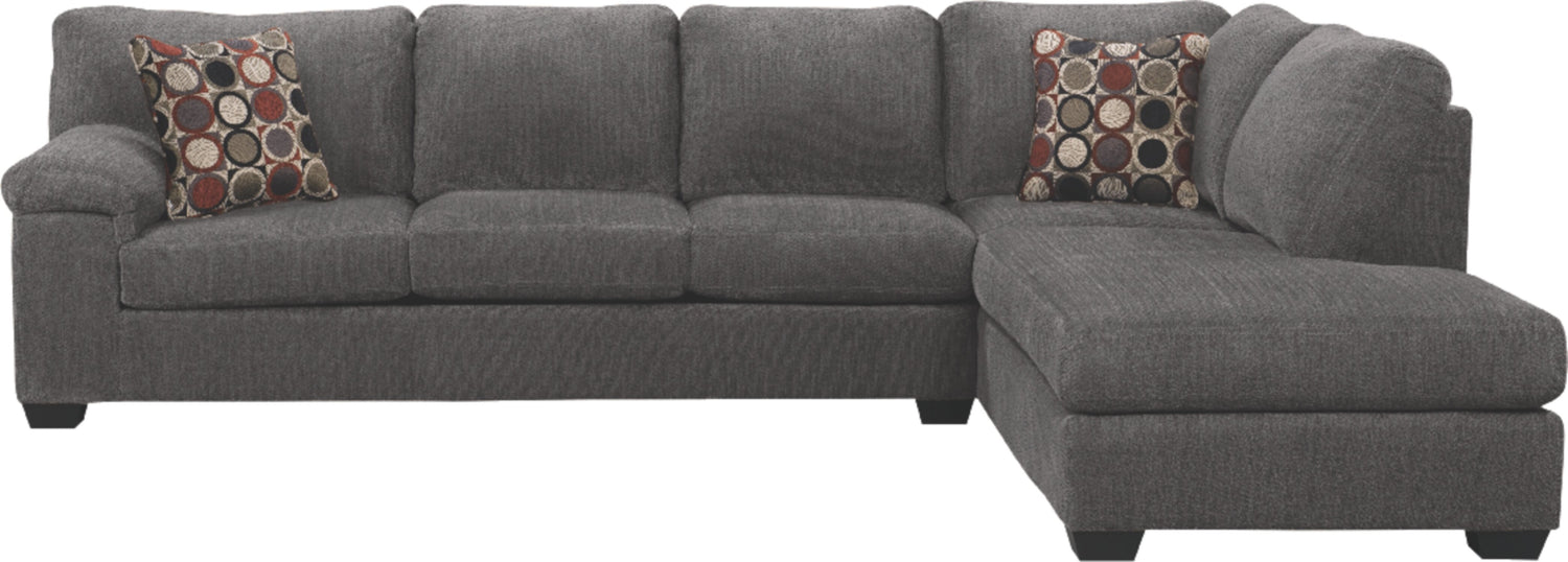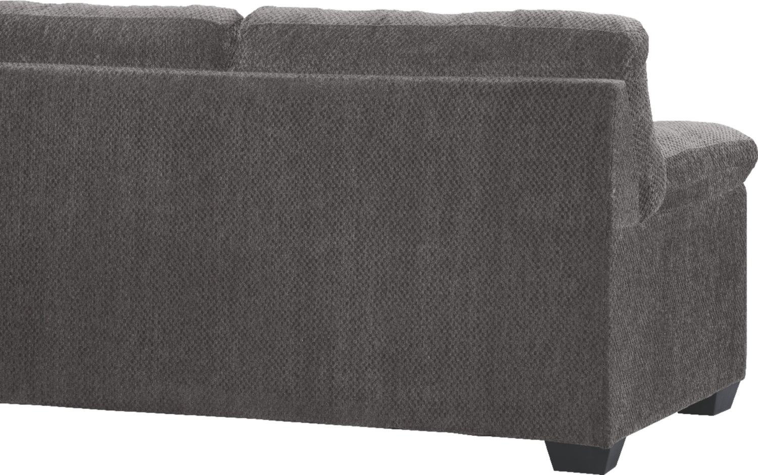 Take a seat and enjoy the plush comfort of this Morty two-piece sectional. Wrapped in velvety soft chenille, this cozy upholstery features a tasteful grey hue to suit many room decor options. Plump, lush seat cushions are packed with high-density foam to ensure your whole family can relax in comfort. As well, each cushion is supported by durable sinuous springs – a must for anyone who wants to lounge without aches and pains. Give yourself a chic and satisfying place to unwind with this Morty right-facing sectional.