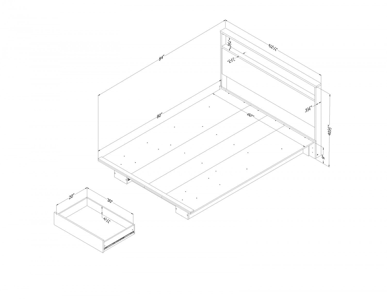 Width: 62.25" (158.1 cm) Height: 40.5" (102.9 cm) Depth: 84" (213.4 cm)