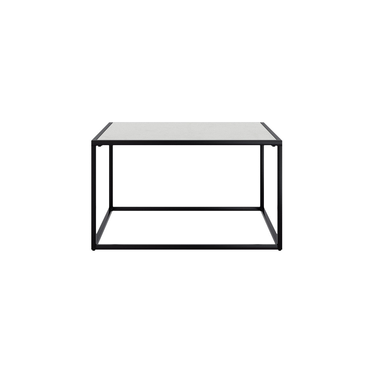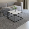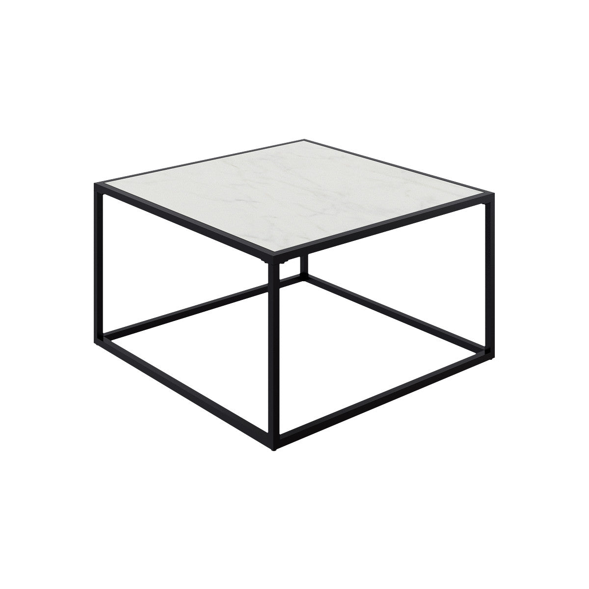 Stylish square table with a marble top and metal frame.