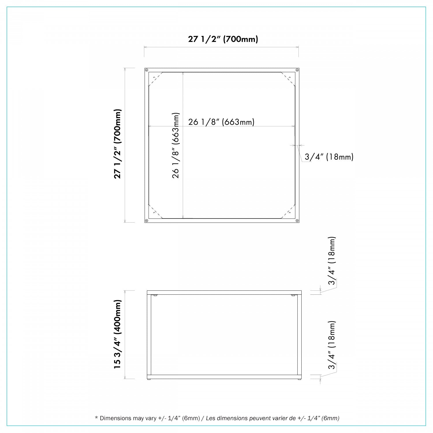 Width: 27.56" (70.0 cm) Height: 15.75" (40.0 cm) Depth: 27.56" (70.0 cm)