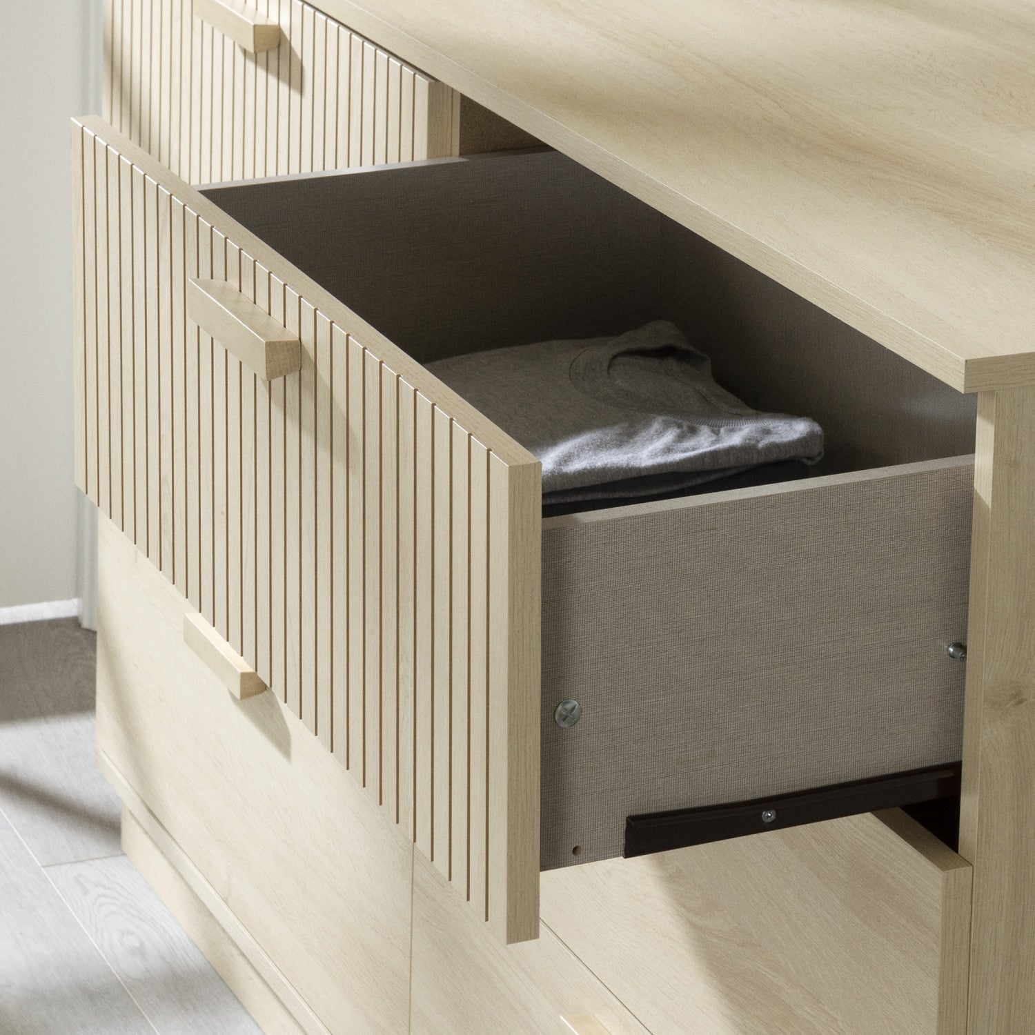 Creating a children's bedroom that endures the test of time, both in style and functionality, can be a real challenge. You won't go wrong with this tone-on-tone 6-drawer dresser, whose top 2 drawers are decorated with vertical slats. Its playful yet understated look will complement most contemporary decors. Unisex, this dresser is suitable for all ages and life stages, from childhood to adolescence.