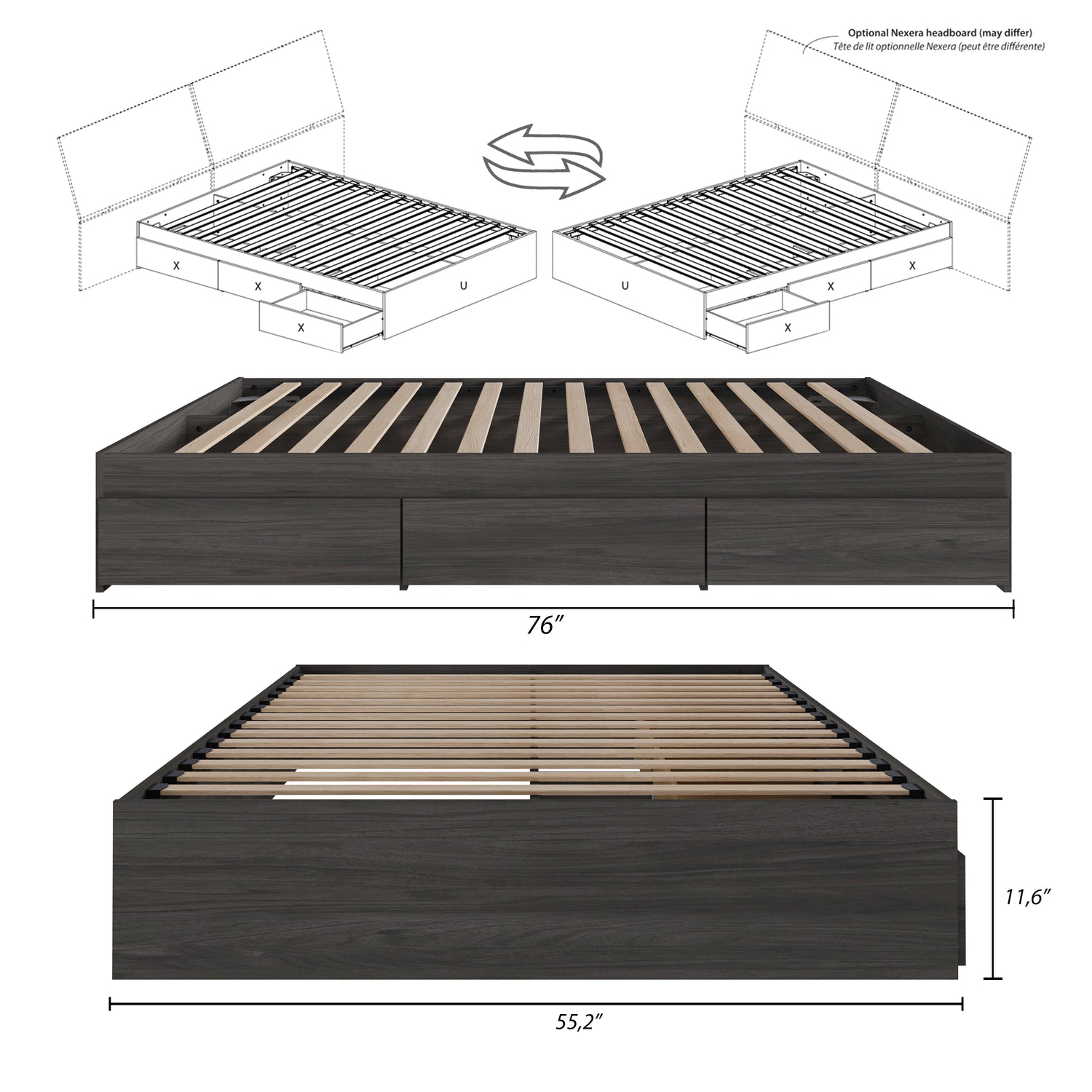 Nexera Full size 3-drawer bed in Bark Grey can be paired with different Nexera Full size headboards to create a complete bed set with lots of storage. This Full Size 3-Drawer Storage bed offers 3 convenient drawers, ideal to store away beddings, clothes, toys, books without taking any extra square footage. It's also entirely reversible, so you can decide on which side of the bed you prefer having the 3 drawers. This bed frame features a unique metal and hardwood slat construction allowing for easy assembly, sturdy construction and easier handling.