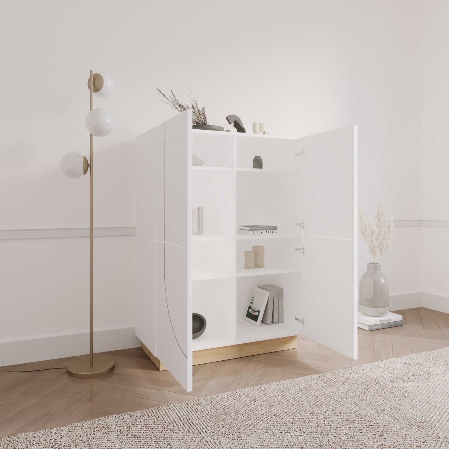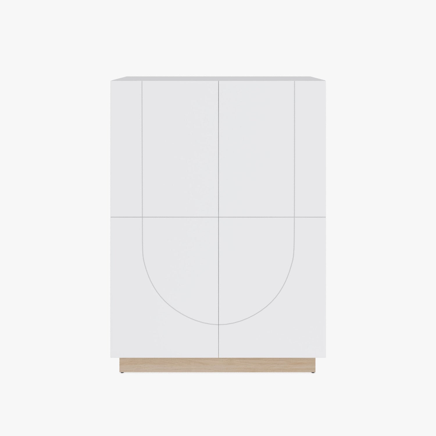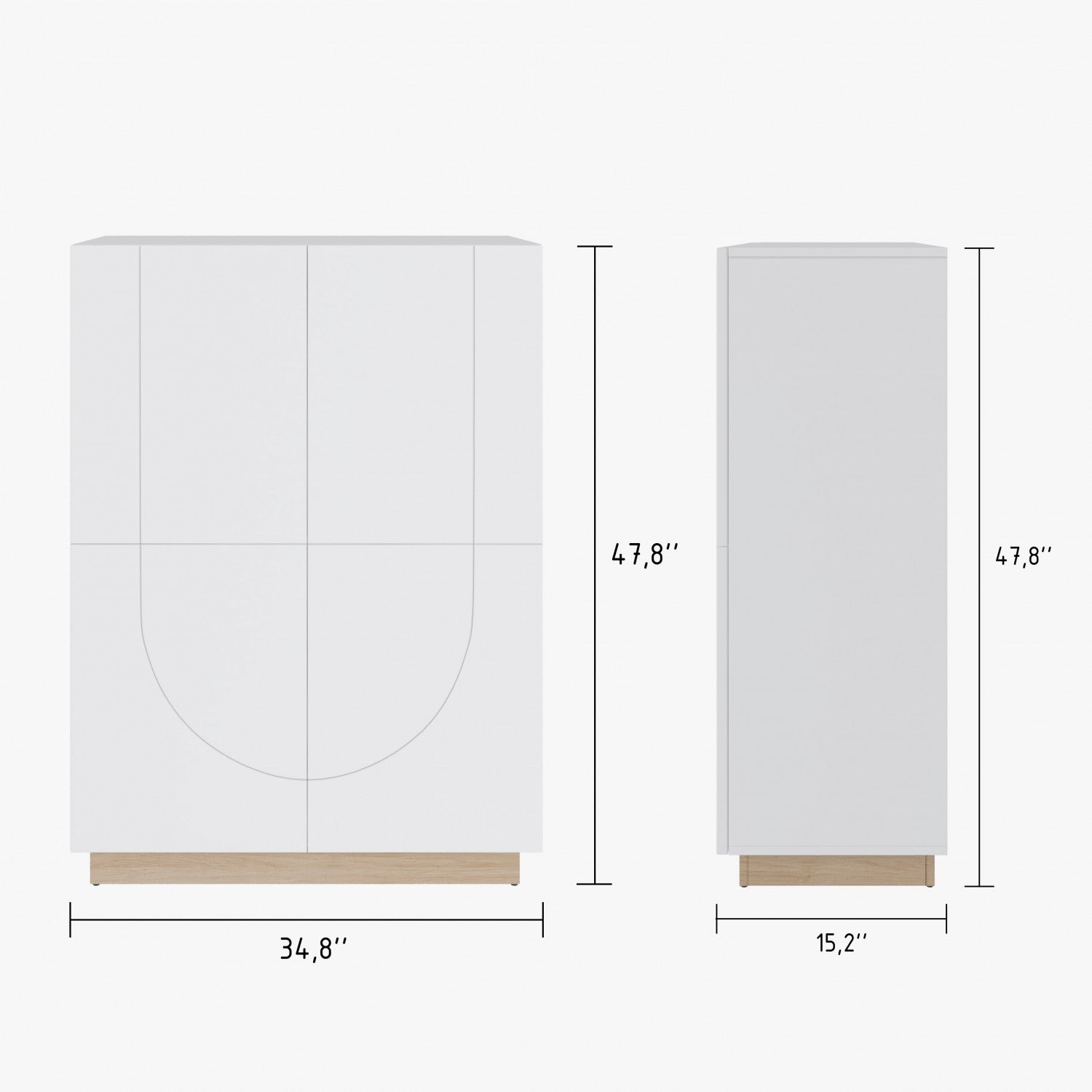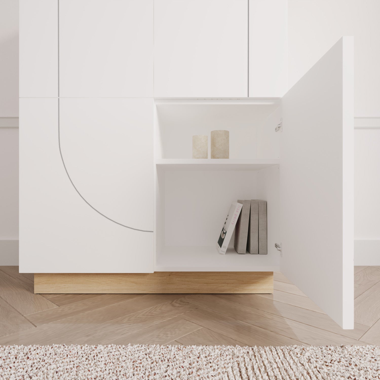 Transform your living space with refined elegance and impeccable organization courtesy of this enchanting accent buffet cabinet. Collaboratively designed with artist Marilou Cote, this versatile piece effortlessly integrates into any home environment. Featuring gracefully engraved, curved designs on its doors, it radiates a contemporary and chic aesthetic. With three adjustable shelves on each side, the buffet cabinet provides ample storage, perfect for enhancing your entryway, living room, or bedroom. Its two doors conceal an adjustable shelf, while two open storage spaces ensure easy organization. Proudly crafted in Canada using CARB II/FSC Certified particle board and MDF materials, this cabinet combines style with sustainability for a truly exceptional addition to your home decor.