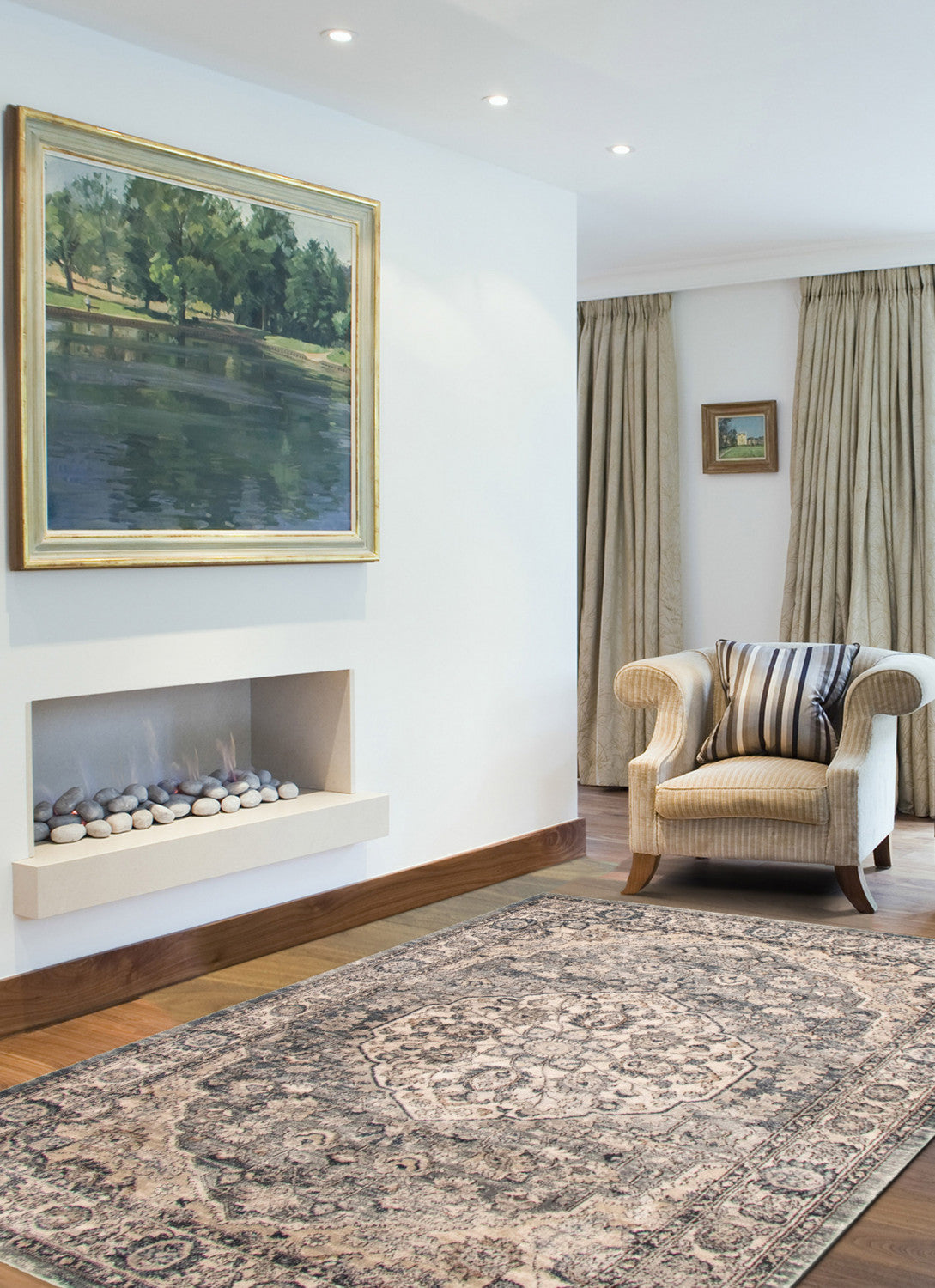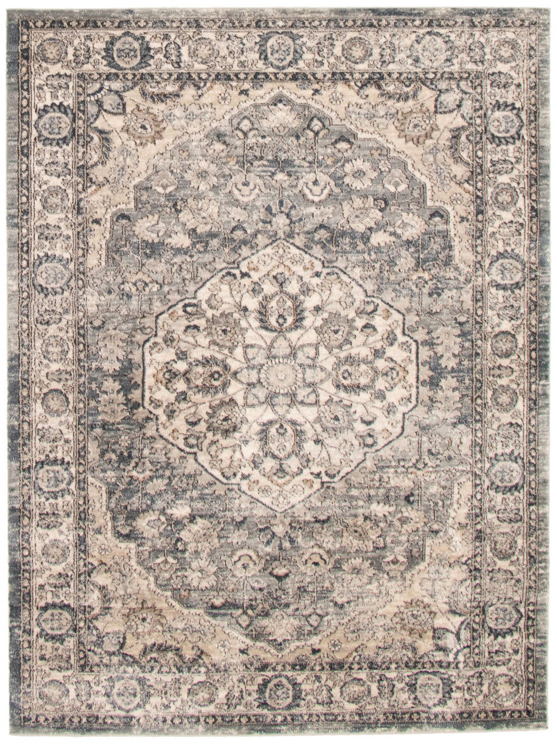 Octavian Tabriz Blue-Ivory Area Rug - 6'7" x 9'6"