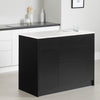 installed in the heart of your kitchen or against a wall, your new impeccably finished kitchen island features a melamine countertop. This makes it impressively resistant not only to water, but also to scratches. With just a damp cloth, you can clean the panels and surface in no time at all. You'll love both its practicality and its delicate contemporary look, accentuated by slim black metal handles. A must-have for kitchens where space is scarce!