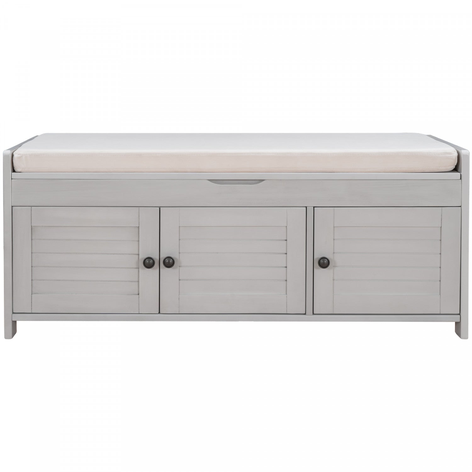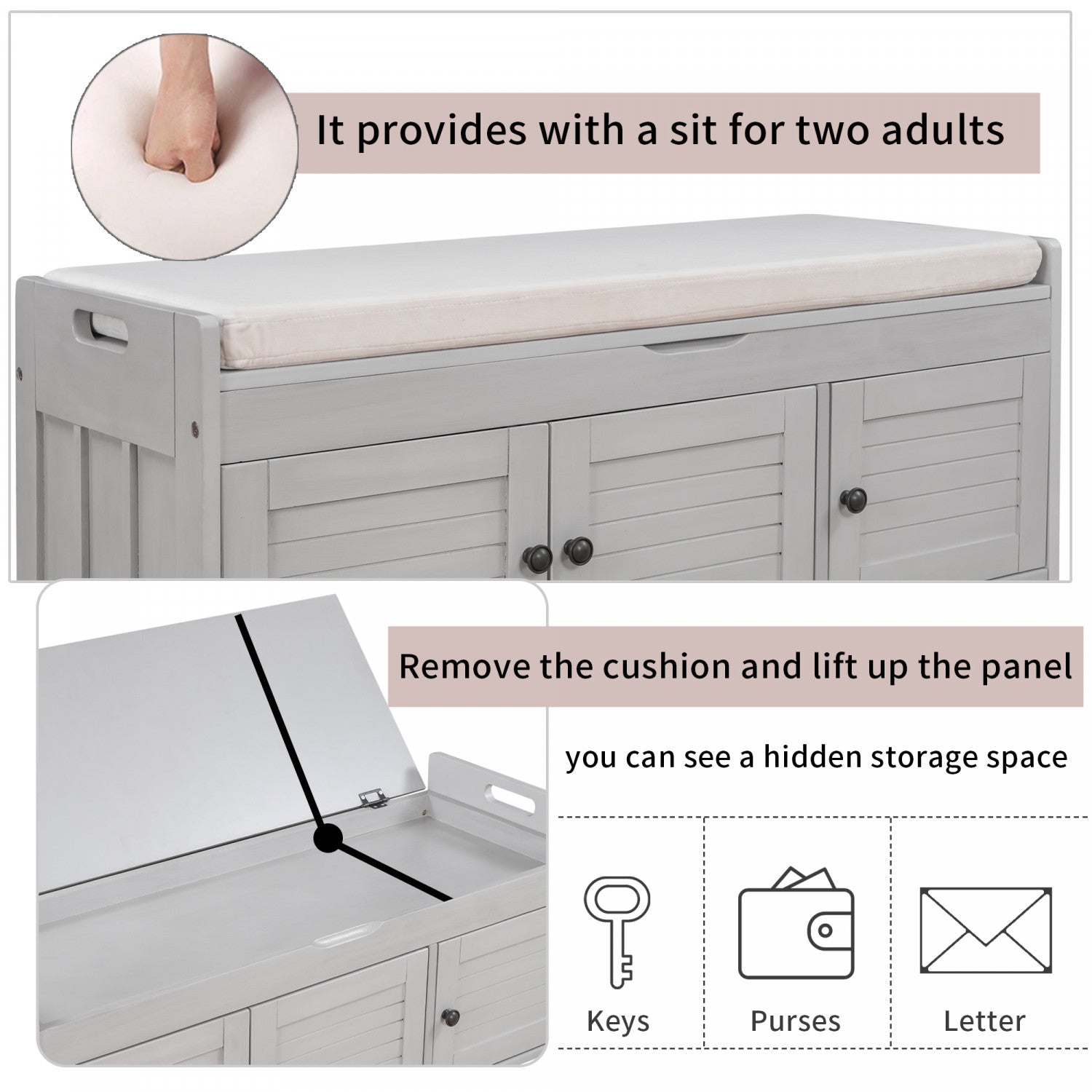 Olivia Pine Wood Storage Bench With 3-door Shoe Cabinet With Hidden Compartment - Grey