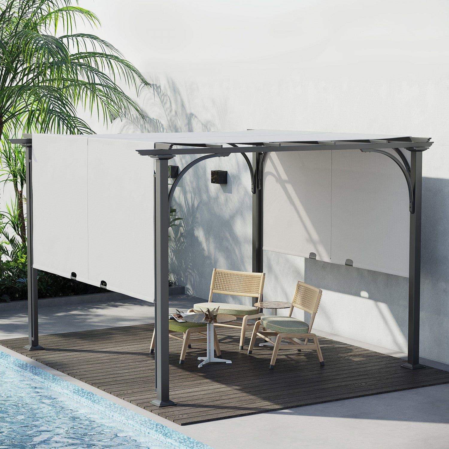 Outsunny 10' X 10' Outdoor Pergola Patio Gazebo Retractable Canopy, White