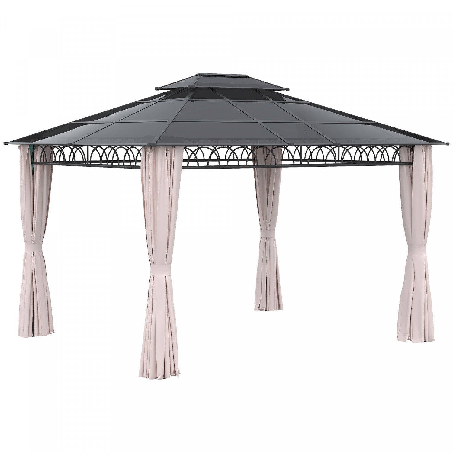 Key Features | - Spacious enough for your guests to feel free to move around; - Translucent polycarbonate hardtop lets in a bit of sunlight while providing shade; - Combined metal and aluminum frame provides more excellent stability and robustness; - Double-vented roof helps circulate air; - Mesh netting keeps insects out, and polyester curtains provide privacy; - Eight stakes and eight expansion screws are included for added stability; - Remove snow in time and avoid using it in extreme weather conditions such as floods or strong winds; - Assembly required; |
