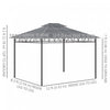 Additional Information | - Colour: Black Roof, Dark Grey Frame, Khaki Curtains; - Materials: Aluminum, Metal, PC Board, Polyester, Nylon; - Overall Dimensions: 141.7" L x 118.1" W x 109.4" H (360 x 300 x 278 cm); - Eaves Height: 81.1" H (206 cm); - Column Spacing: 123.2" L x 100" W (313 x 254 cm); - Item Label: 84C-364V02KK; |