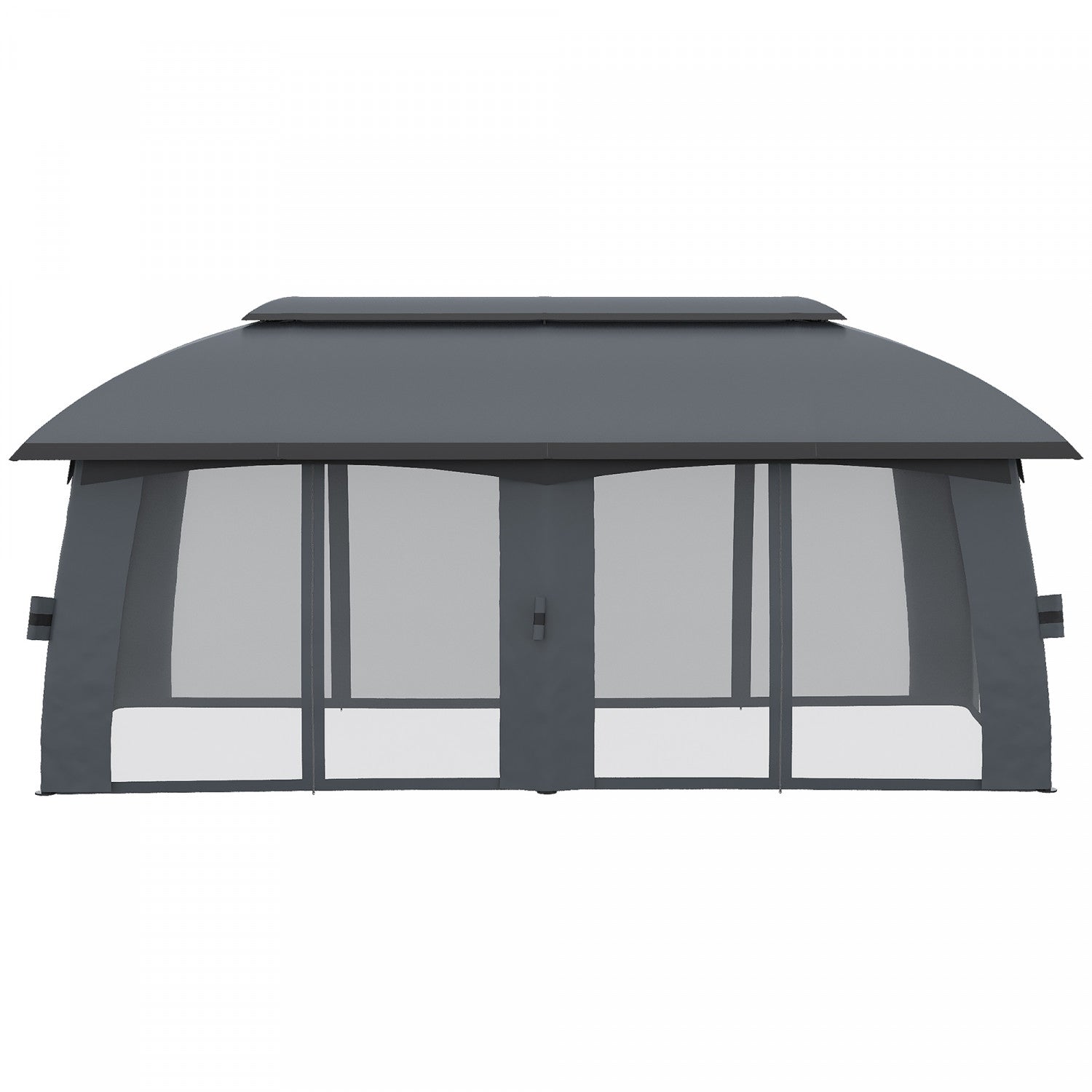 Outsunny 10' X 20' Patio Gazebo, Outdoor Gazebo Canopy Shelter With Netting, Vented Roof, Steel Frame For Garden, Lawn, Backyard And Deck, Dark Gray