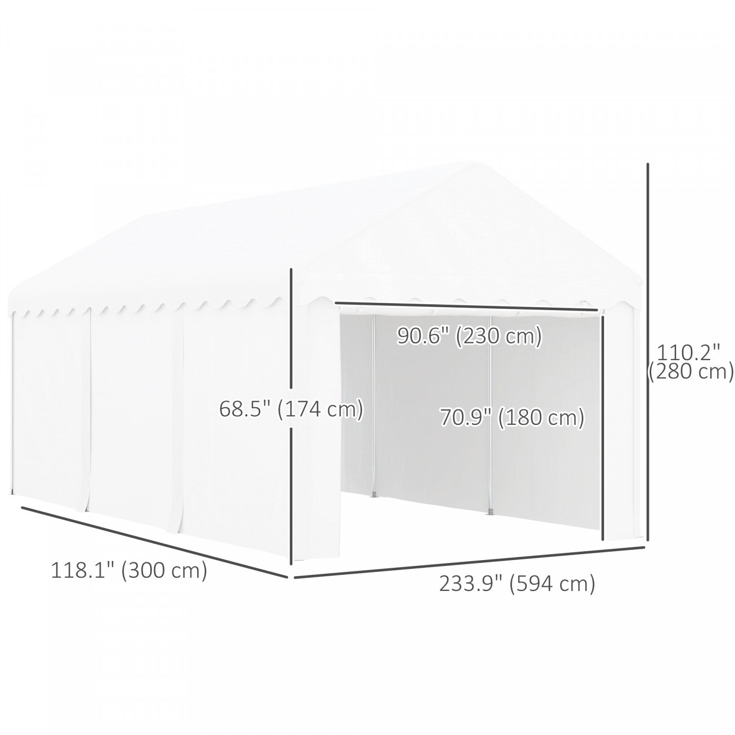 Outsunny 10 X 20ft Carport, Portable Garage With 2 Roll-up Doors, White