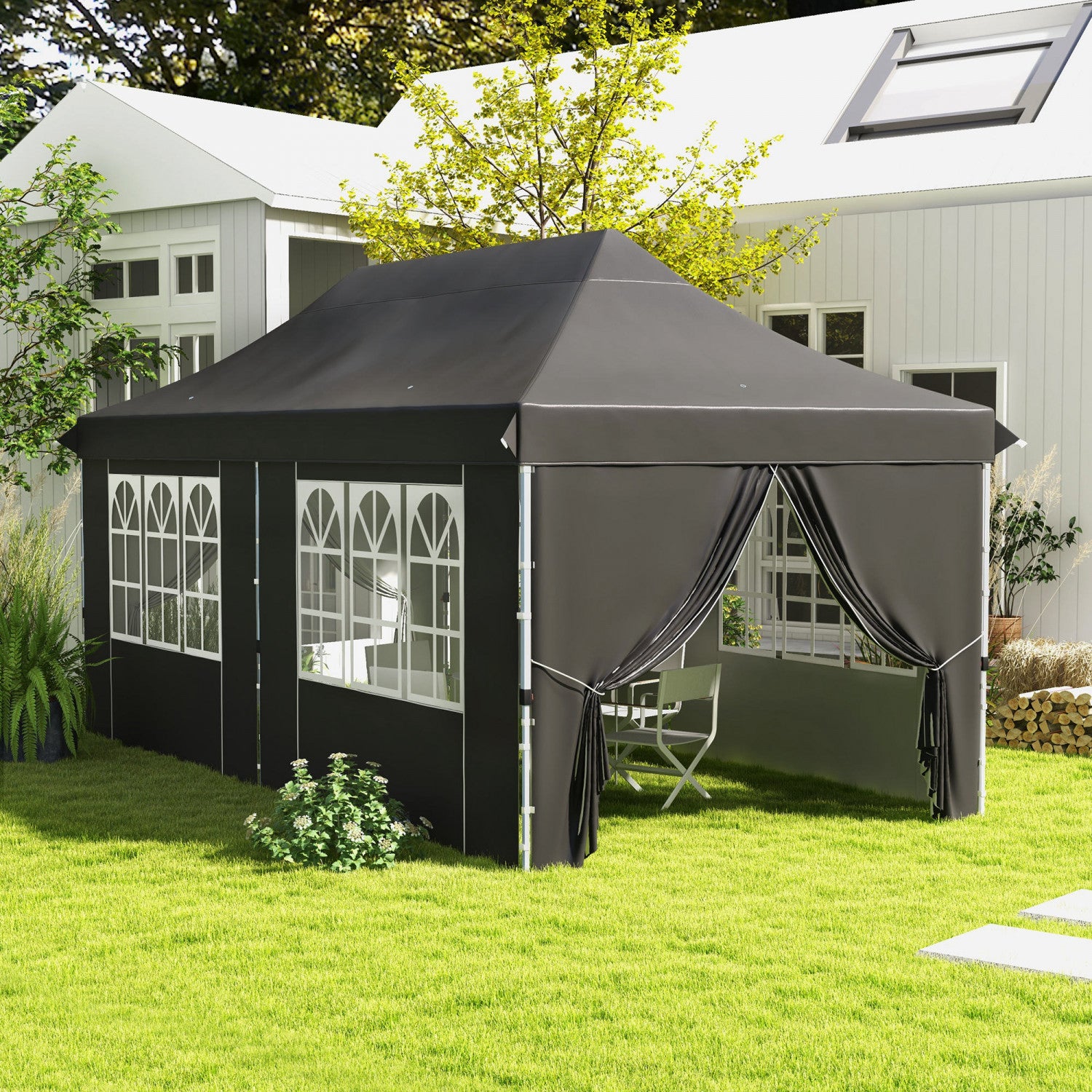 Outsunny 10 X 20ft Pop Up Canopy Tent With 6 Removable Sidewalls, Height Adjustable Large Instant Shelter With 4 Windows, Carry Bag, 6 Sand Bags For Outdoor, Garden, Patio, Grey