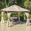 Outsunny 11' X 11' Steel Gazebo Canopy Party Tent Shelter With Double Roof, Netting Sidewalls, Corner Curtains, Beige