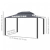 | Key Features | ● With mesh and curtain sidewalls ● Constructed from a powder-coated anti-rust aluminum frame ● UV resistant canopy with PA coating ● Side curtains and mesh netting are easily attached with hook and loop fasteners ● Two-tier top design reduces heat and wind stress for good air circulation ● 8 grommet holes for excellent water drainage ● Equipped with 8 stakes to make the gazebo firm and sturdy |