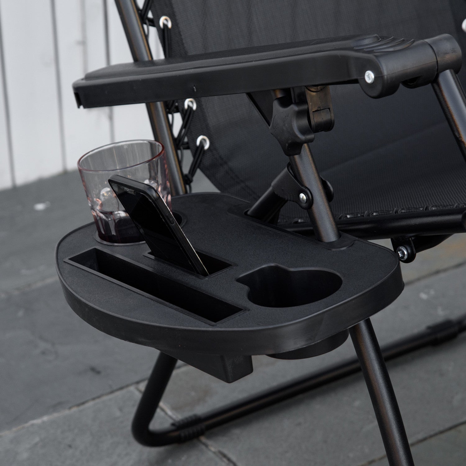 Outsunny 2 Piece Foldable Lounge Chair With Canopy Shade, Black