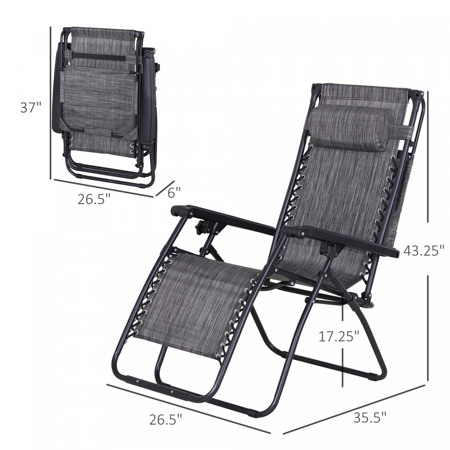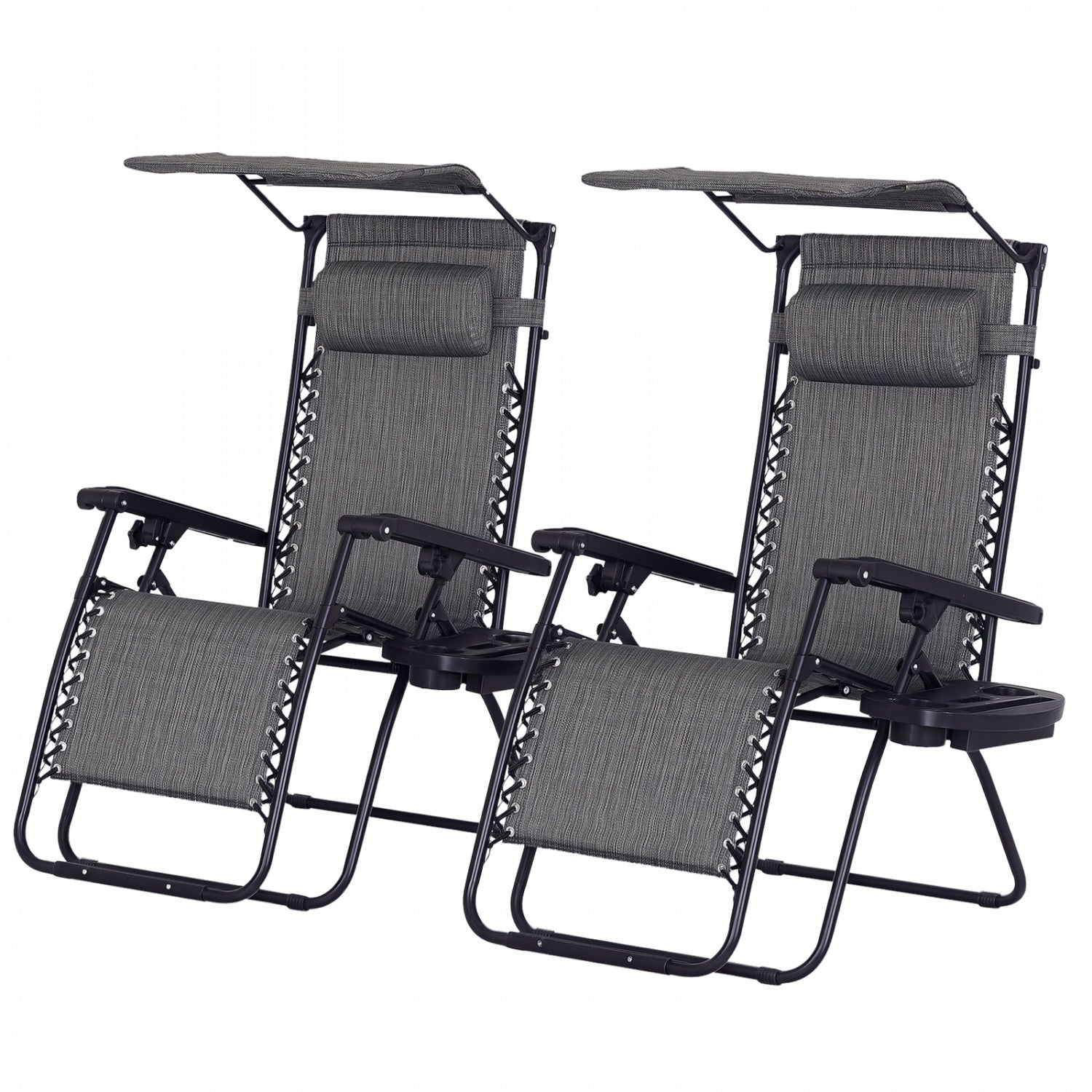 Outsunny 2 Piece Foldable Lounge Chair With Canopy Shade, Dark Grey