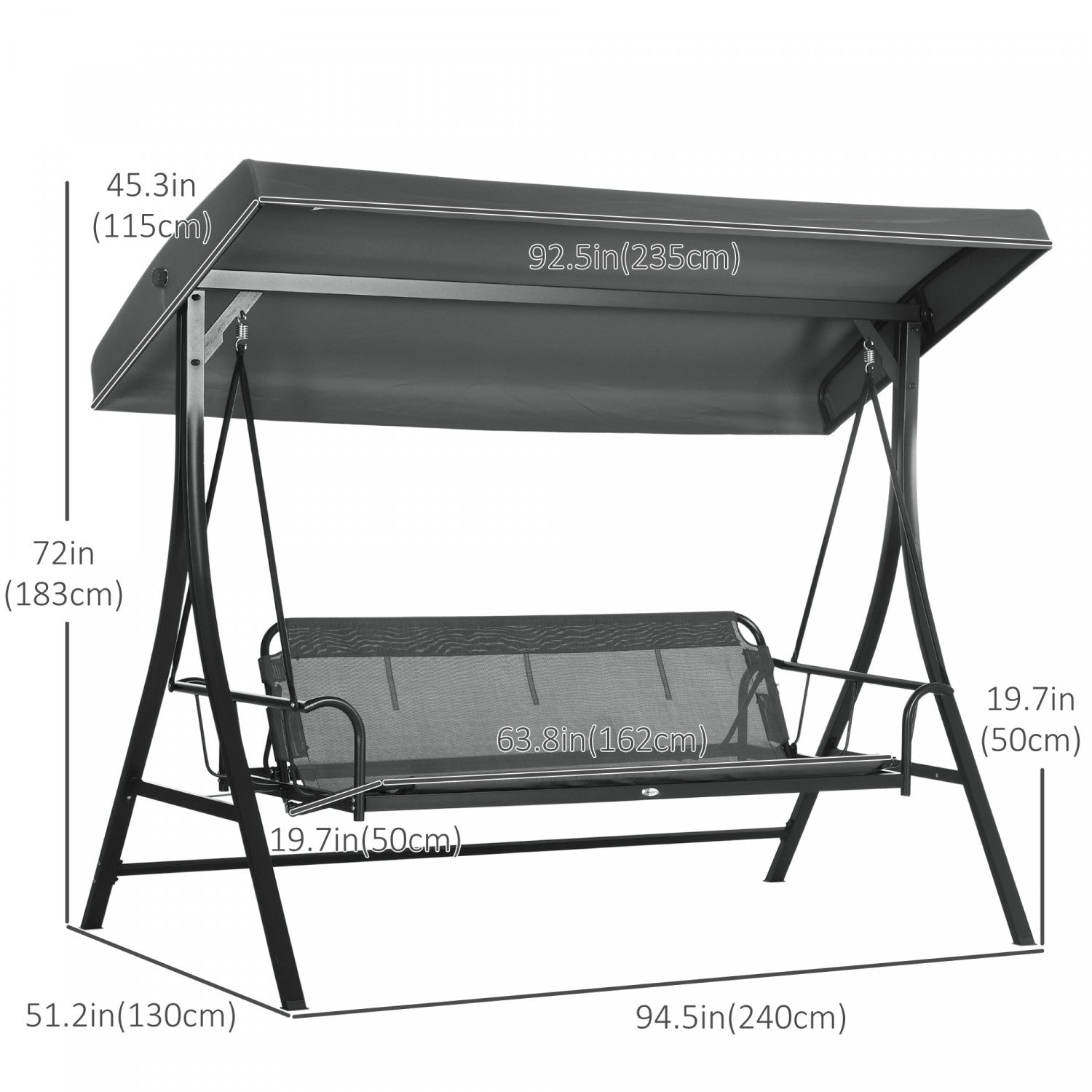 Outsunny 3 Person Porch Swing Bed With Adjustable Canopy Dark Grey