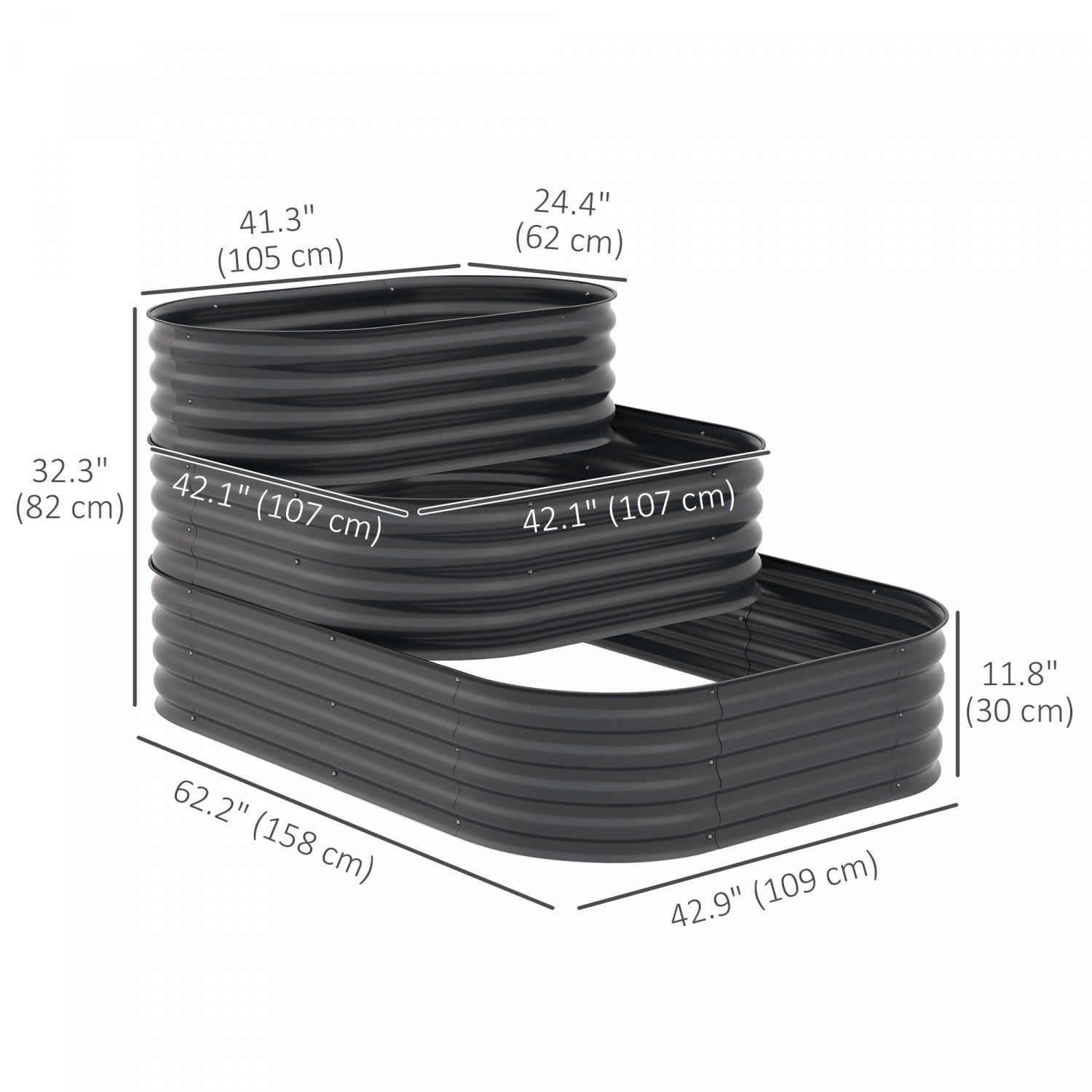 Outsunny 3-tier Raised Garden Bed Kit, 5.2x3.6x2.7ft Outdoor Galvanized Planter Box With Safety Edging For Vegetables, Flowers, Fruits And Herbs, Dark Grey
