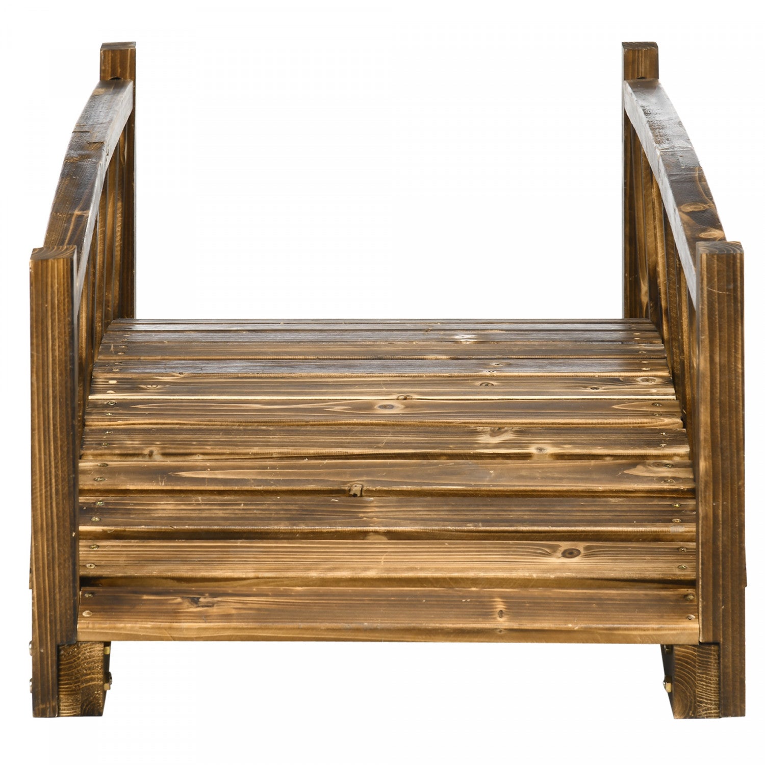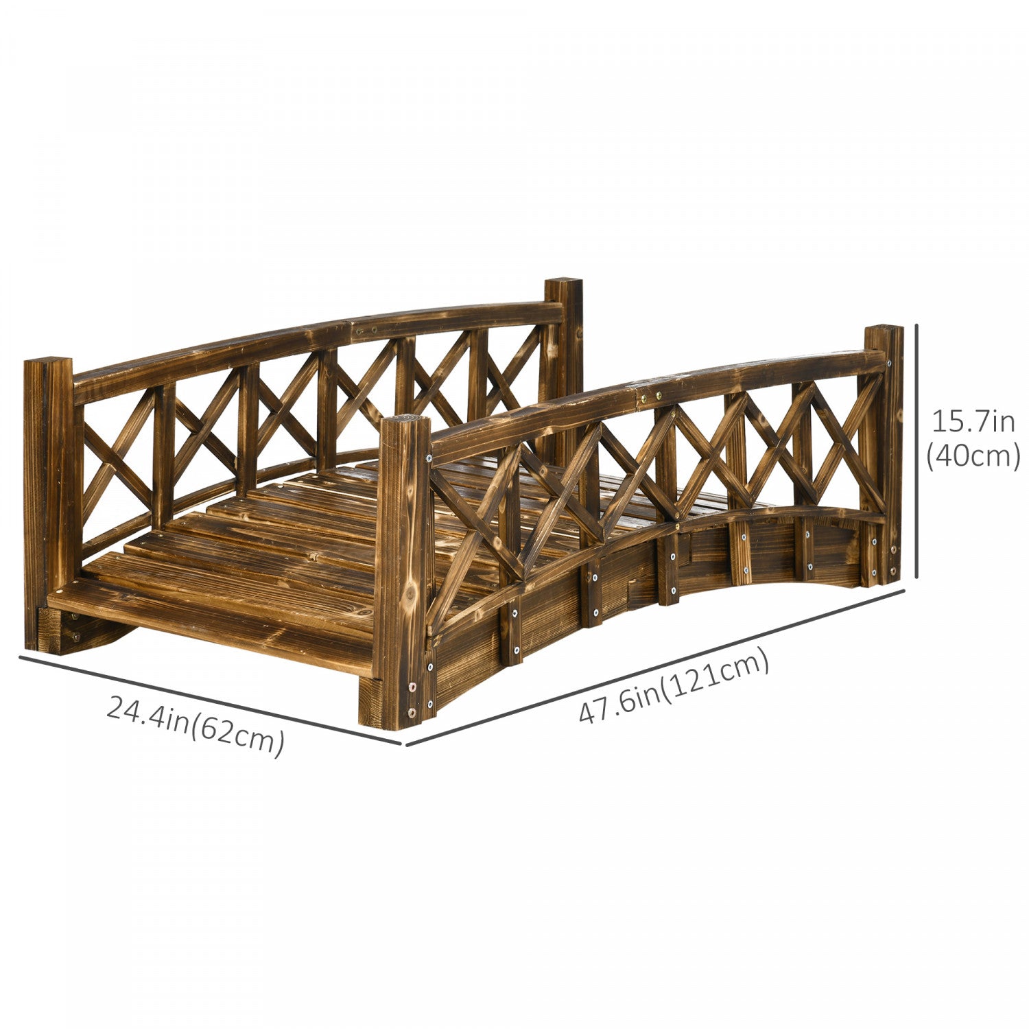 The Outsunny wooden garden bridge with rails is perfect for use as charming landscape decor in a backyard garden, near a pond, or over a small stream. Made of solid fir wood with weather-resistant paint to resist rot, cracking, and splitting, the pond bridge is both wonderful looking and long-lasting. The elegant traditional design is sure to be the centerpiece of your landscaping and a place where you can pause and reflect on the beauty of nature. Add a unique piece to your beautiful garden.