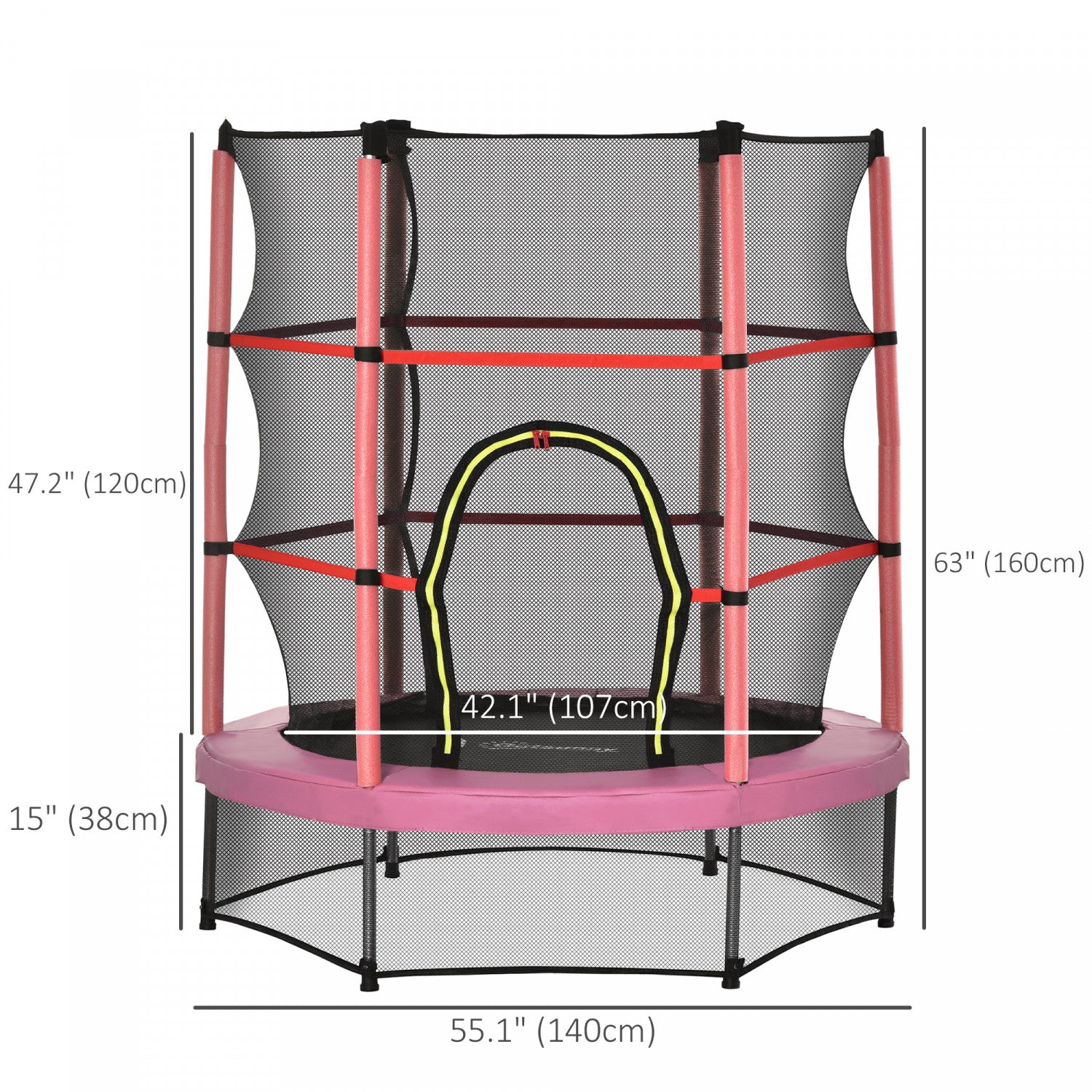 Outsunny 55" Kids Trampoline with Enclosure Net Steel Frame Indoor Round Bouncer Rebounder Age 3 to 6 Years Old, Pink