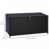 | Key Features | - 75 gal (285 L) inner storage capacity for gardening tools, pool supplies and more; - Two gas struts for easy opening and safe closing, avoiding finger pinching; - The top lid with a PP board and a toggle latch lock for safe use; - Powder-coated steel frame wrapped in PE wicker for outdoor use; - Versatile design functions as an outdoor storage bin or side table; - Assembly required; |