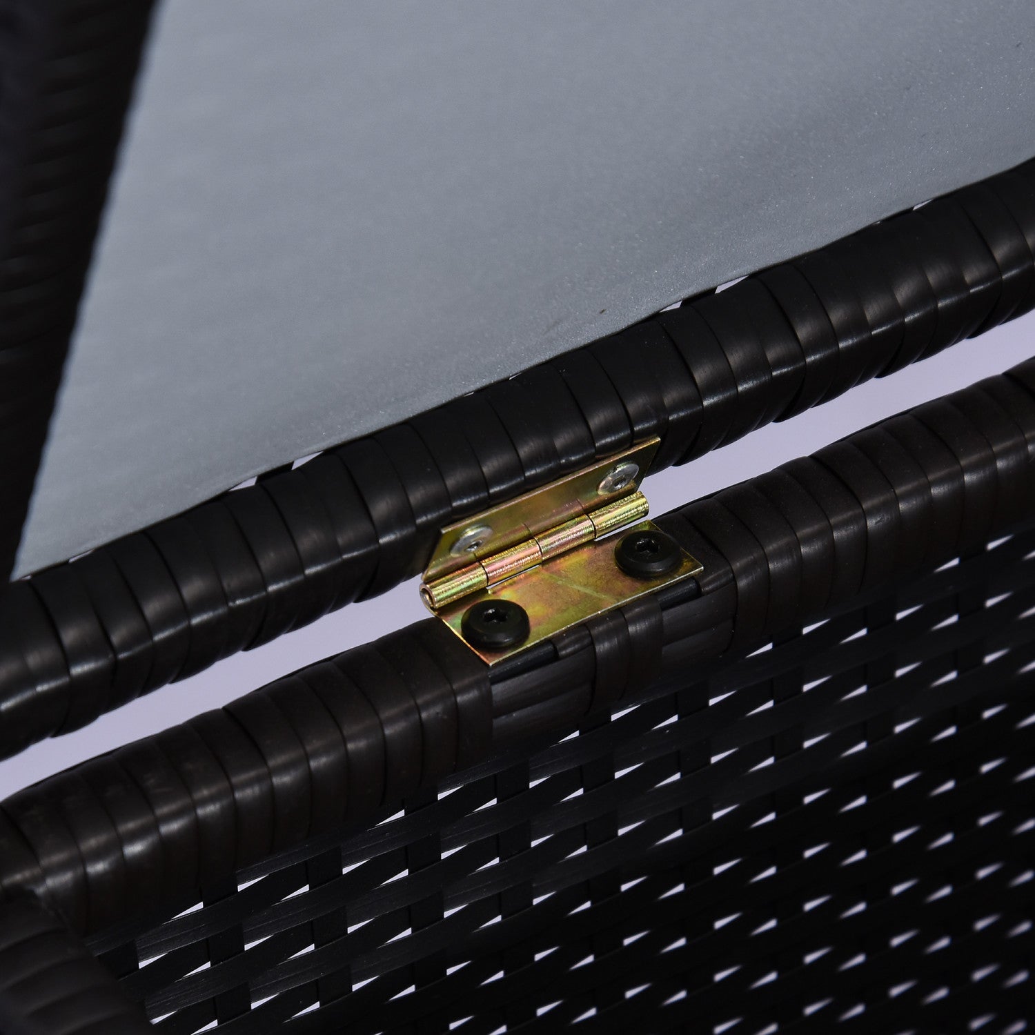 | Additional Information | - Colour: Dark brown; - Material: Steel, PE rattan; - Overall Dimension: 46.5" L x 21.3" W x 23.2" H (118 x 54 x 59 cm); - Inner Storage Dimension: 44.5" L x 17.7" W x 22" H (113 x 45 x 56 cm); - Weight Capacity: 88 lbs. (40 kg)(inner), 55 lbs. (25 kg)(top); - Net Weight: 25.3 lbs. (11.5 kg); - Item Label: 865-003; |