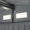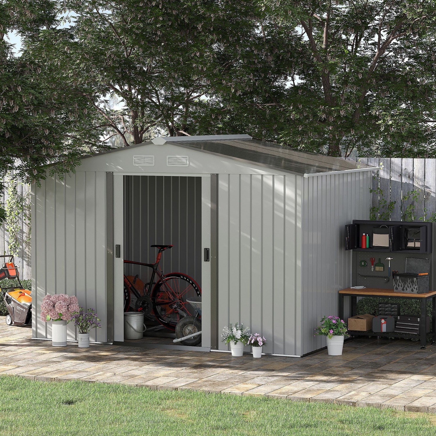 | Key Features | ● Large inner space for storing tools bicycle, garden tools, lawn care equipment and more ● Built from colour steel construction with painted finish for weather protect ● Sloped roof prevents moisture and rain from pooling ● Double sliding doors for easy access ● 4 vents for increased lighting and airflow ● Panels are pre-cut and pre-drilled for faster assembly |